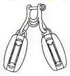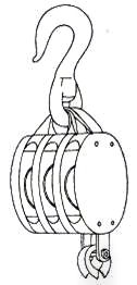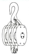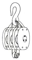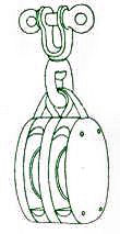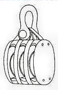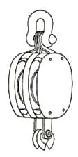 | Bozzello di andata e ritorno della scotta di fiocco. | Bozzello doppio, con gancio doppio. | Bozzello triplo, con maniglia |