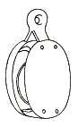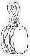 | Bozzello triplo da guarnire con cavo vegetale | Bozzello semplice (vista laterale e frontale) per stroppo di cavo vegetale | Bozzello del tipo a violino incrociato olandese impiegato nel XVII sec. per scotte di gabbia e mantigli del pennone maggiore (vista laterale e frontale. |