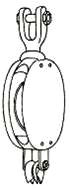 | Bozzello semplice, con perno a molinello in golfare a vite. | Bozzello doppio, con anello fisso. | Bozzello doppio, ammanigliato |