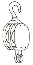 | Bozzello a violino del XIX secolo con stroppo esterno e gancio | Bozzello di scotta a stroppo di cavo metallico e castagnola per lo scorrimento del bozzello su una guida (XX sec.). | Bozzello doppio con stroppo doppio e gancio per il penzolo della caliorna di un albero maggiore (XIX sec.). |