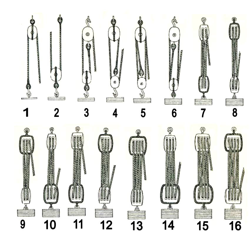 - Bozzelli – Cassette ovoidali, di legno duro o di ferro, a una o più cavatoie, nelle quali sono imperniate le rotelle o pulegge su cui scorre il cavo. Hanno diverse forme e dimensioni e servono per attrezzare un dato sistema funicolare, col quale cambiare la direzione del tirante o diminuire lo sforzo per sollevare o abbassare un oggetto.