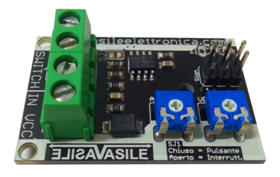 - Premere il pulsante o interruttore cablato sull’ingresso Switch (il servocomando inizia la rotazione fino alla posizione di apertura regolata tramite trimmer)
