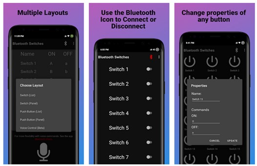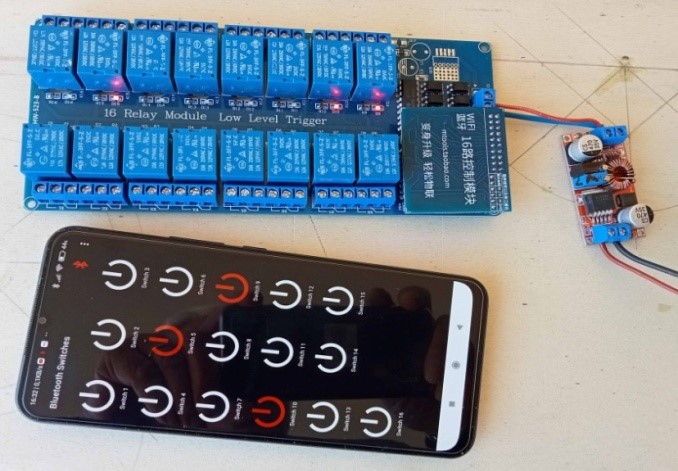 Potendo cambiare il numero dei tasti (switch o button) si possono usare hardware diversi, significativamente da 4,8,12 e 16 relè; il ricevitore Bluetooth ESP32 si inserisce nel connettore del 16 Channel Relay Shield Module dal quale prende comandi e alimentazione risultando così un sistema funzionale e compatto.