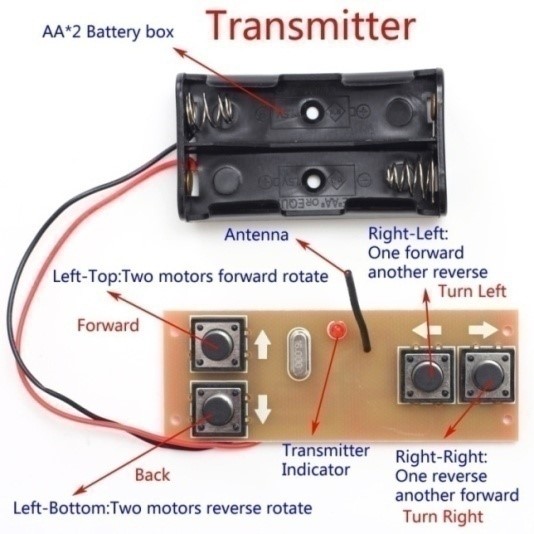 TX + RX 4 pulsanti 2 ch NO PROPORZIONALE max 2A X motore