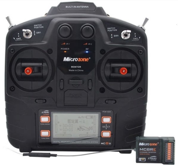 Microzone MC8B 2.4G Trasmettitore 8ch e MC8RE 8CH 4ch PROP + 2ch on/off + 2ch potenziometri