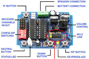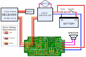 - riproduce 16 suoni da un singolo canale RC proporzionale