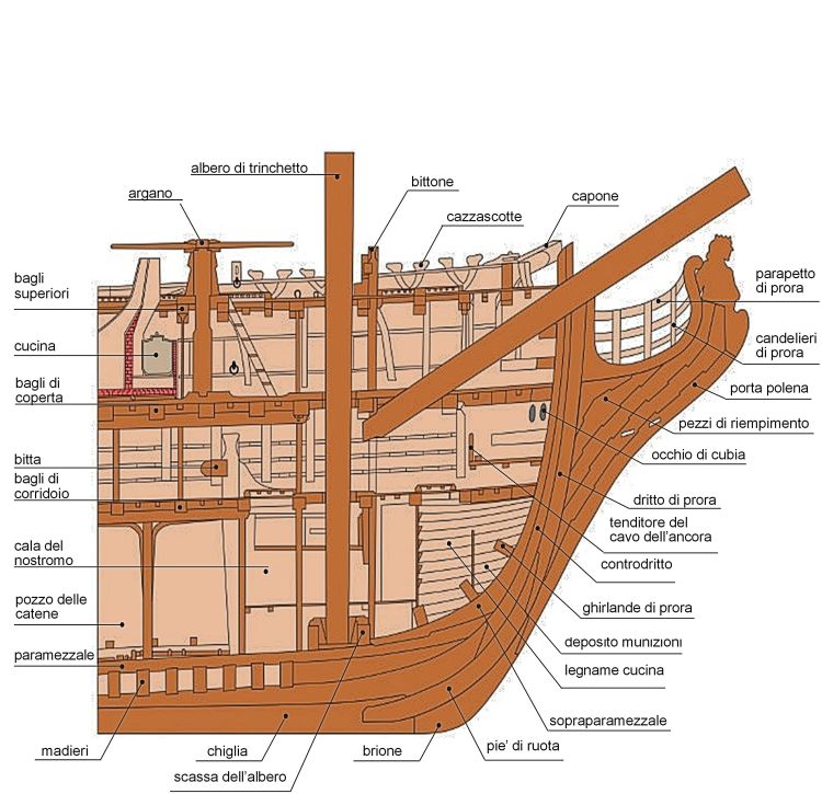 Elementi in legno montati all’interno della struttura pro- diera che, nelle navi antiche, avevano lo scopo di rendere massiccio l’insieme.