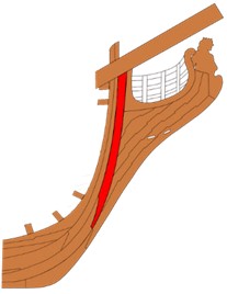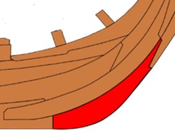 Struttura in legno ricurva – detta anche pie di ruota – posta alla base del dritto di prora.
