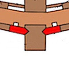 4° Ginocchio: Elemento in legno che concorre a formare l’ordinata nella zona curva dello scafo, fra il fondo e la murata.