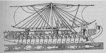 Le imbarcazioni egizie da trasporto erano anche di notevoli dimensioni se potevano trasportare gli enormi blocchi di pietra usati per la costruzione delle piramidi; erano azionate da vele quadre, invece, le navi da parata sfruttavano la forza dei rematori che con pagaie di sicomoro potevano remare inginocchiati o in piedi come è illustrato in un bassorilievo della V dinastia.