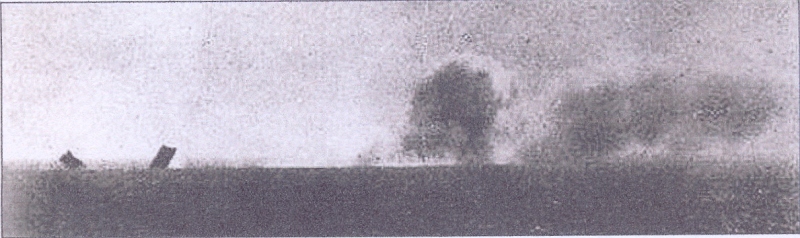 Ore: 15.52: Mentre la Roma zigzagando, faceva un’accostata di 60° a sinistra, l’aereo pilotato dal sergente Steinborn sorvolò di nuovo la corazzata e sganciò la seconda bomba che colpì la nave sul lato sinistro nelle vicinanze del torrione corazzato, dove si trovavano anche le plance ammiraglio e comandante.