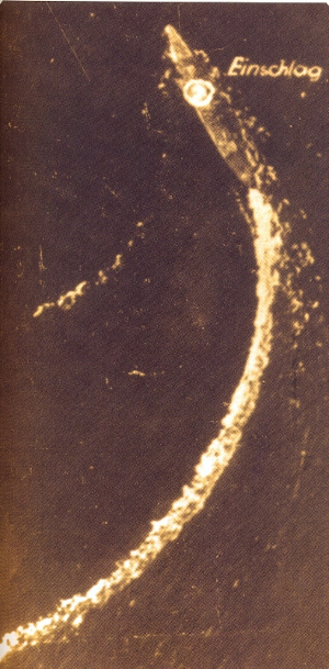 Foto scattata dal bombardiere tedesco Dornier 217 KII alle 15.53, mentre la seconda bomba tele guidata raggiunge la Roma