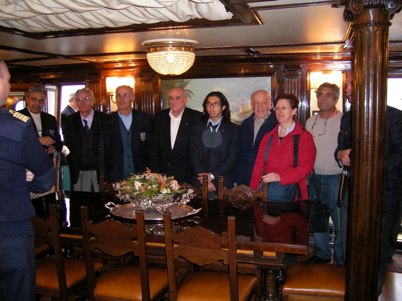 Un gruppo dei soci A.N.V.O. a colloquio con il comandante della nave scuola Amerigo Vespucci