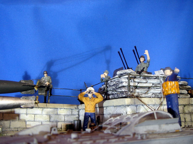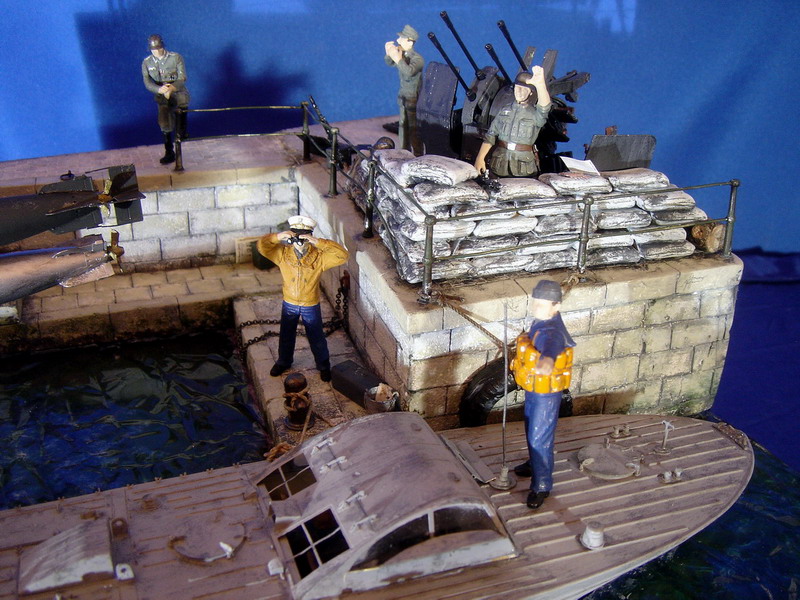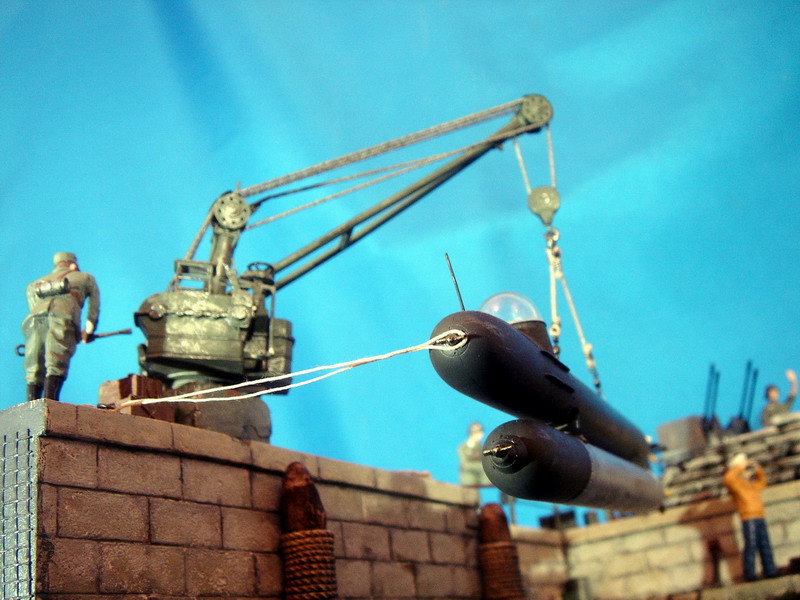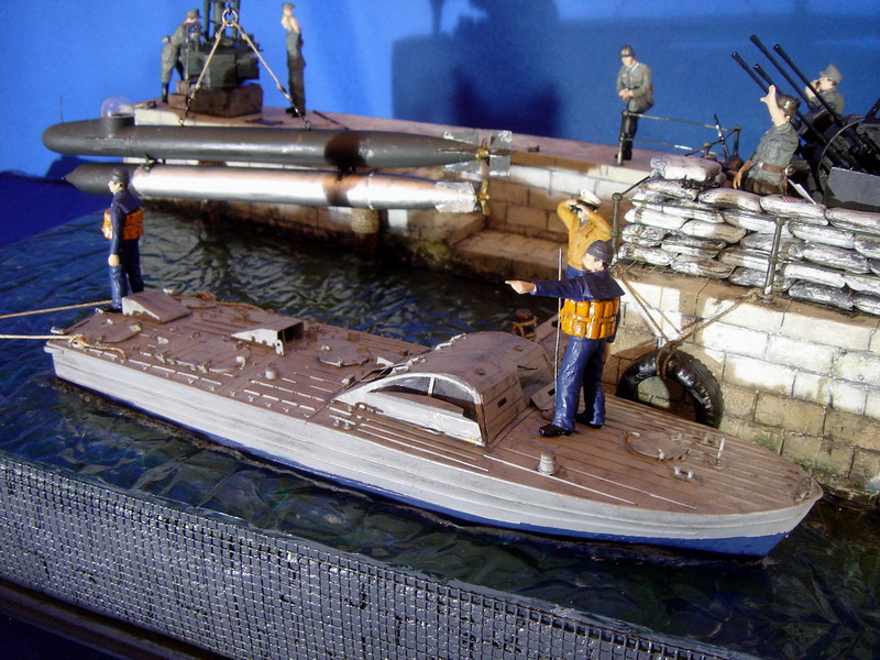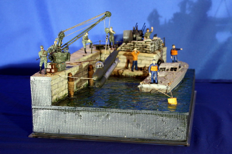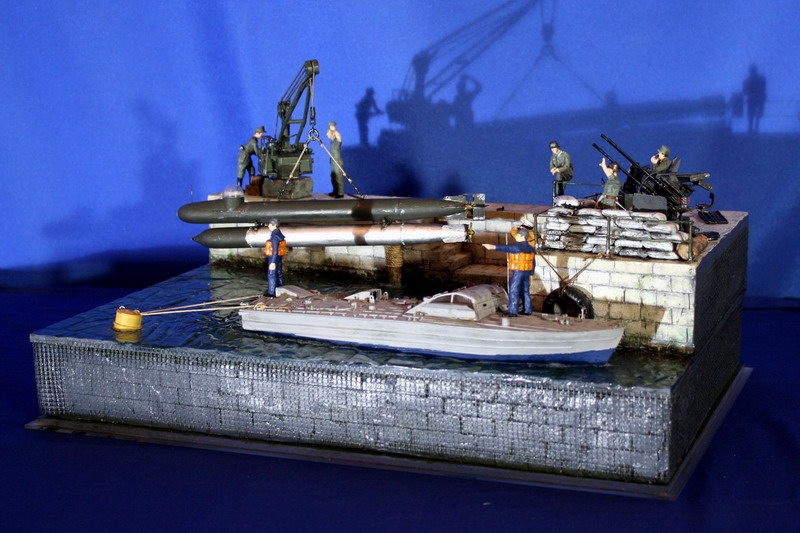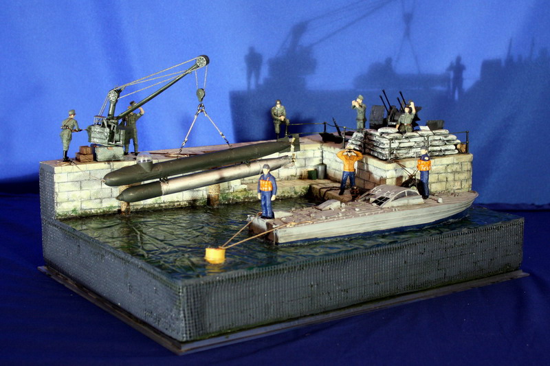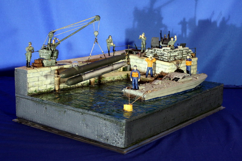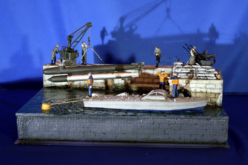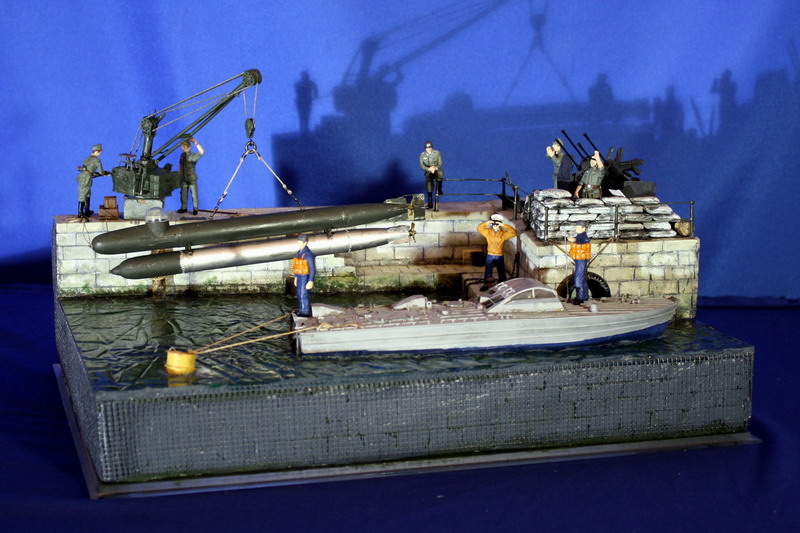 Il diorama, realizzato dal Sig. Dino Dall’asta in scala 1:35, descrive una banchina nel 1942 sulla quale sono in corso operazioni militari. Un motoscafo veloce silurante MTSMA è ormeggiato in banchina con le cime di poppa fissate ad un corpo morto. Una gru sta calando un mezzo d’assalto MARDER composto da un siluro modificato con pilota, sotto il quale è posizionato un siluro esplosivo che veniva lanciato a vista contro l’obiettivo. Il sito è protetto da una mitragliera antiaerea quadrinata.