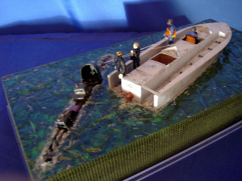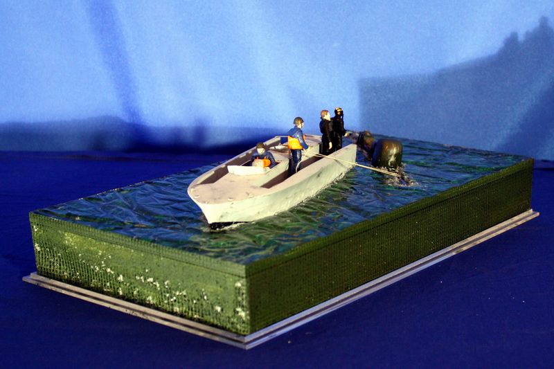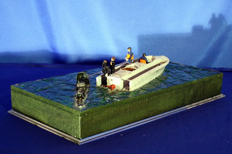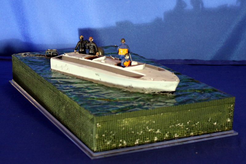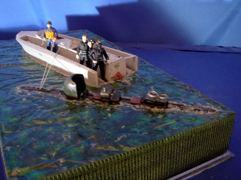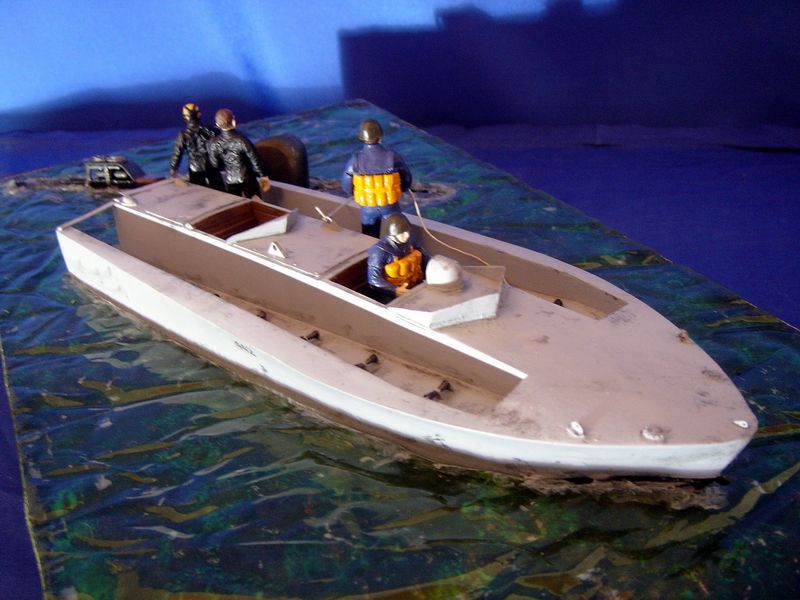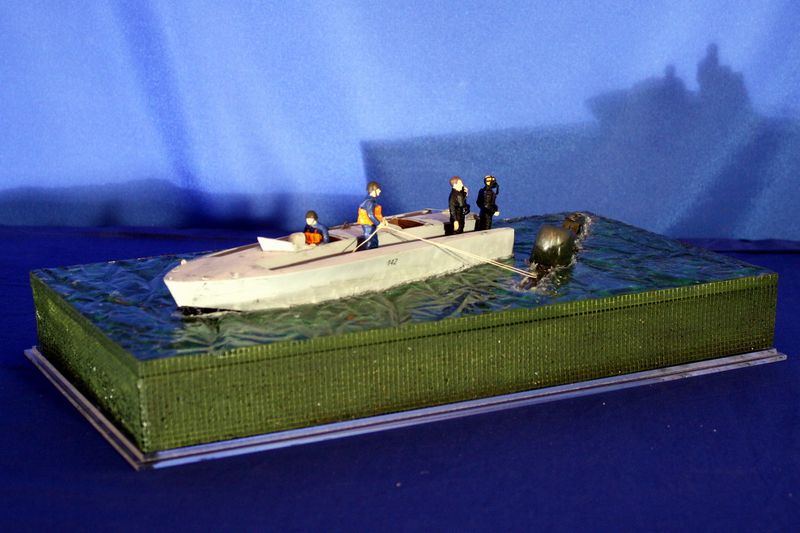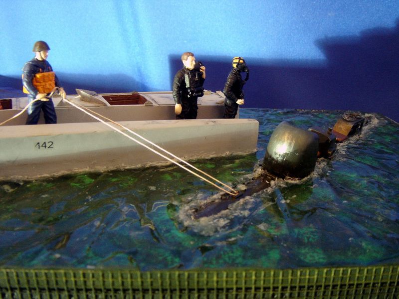 Il diorama, realizzato dal Sig. Dino Dall’asta in scala 1:35, illustra un motoscafo nel 1942 appositamente progettato per trasportare due siluri a lenta corsa (S.L.C.) in prossimità degli obiettivi. Uno dei siluri è in acqua e i due operatori, già provvisti di tute e respiratori, stanno per imbarcarsi.