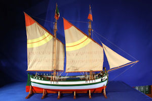 Paranza del 1951 riproduce una imbarcazione originaria della costa di Marche e Abruzzo. Era simile al trabaccolo per la prua ampia e ricurva “a petto d’anatra”. Si distingue però dalle altre barche originarie dell’alto Adriatico per il lungo pennone superiore.