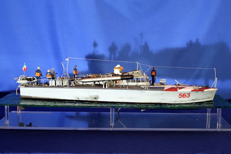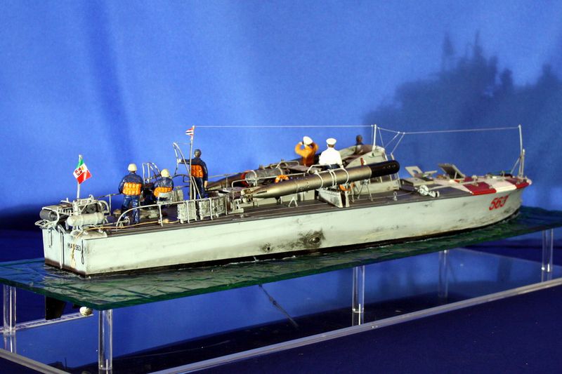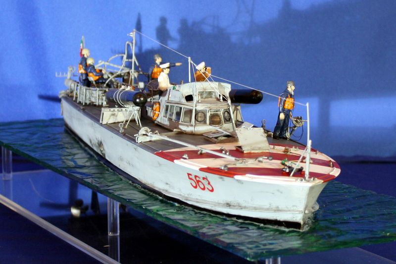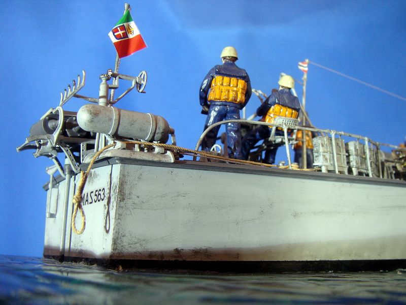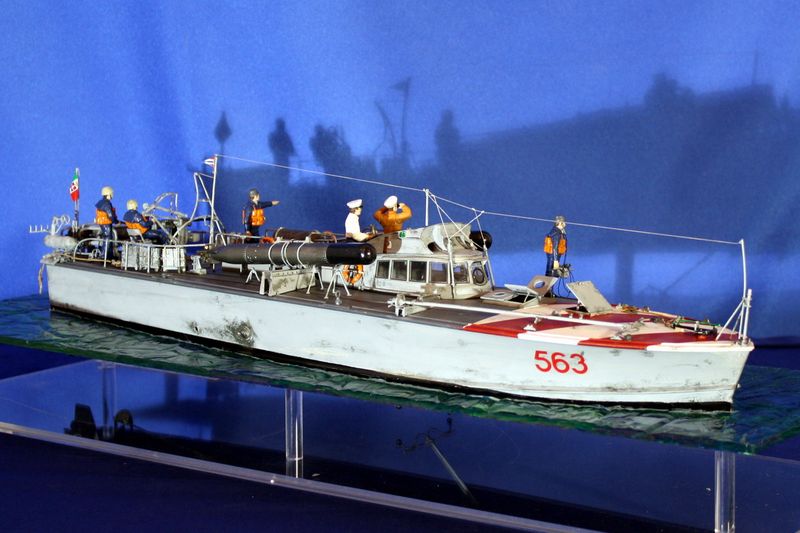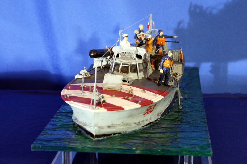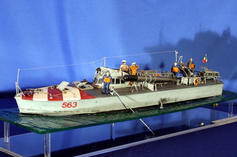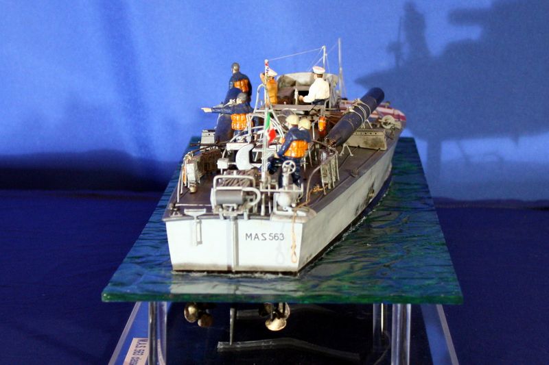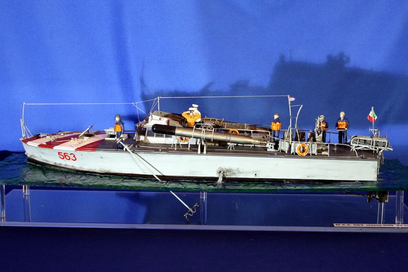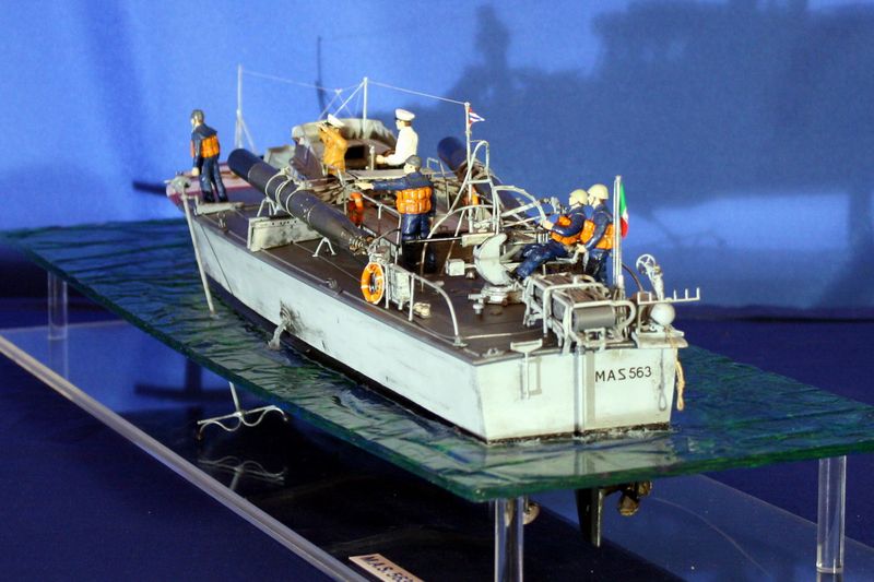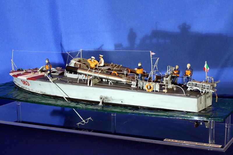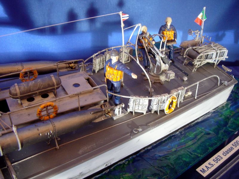 Il diorama, realizzato dal Sig. Dino Dall’asta in scala 1:35, rappresenta un’imbarcazione del 1941. I MAS di questa serie avevano un raggio operativo di quasi 400 miglia e raggiungevano la velocità di 42 nodi. Avevano un equipaggio di 13 uomini. Erano armati con due siluri da 450 mm, una mitragliera Breda da 20 mm e sei bombe di profondità.