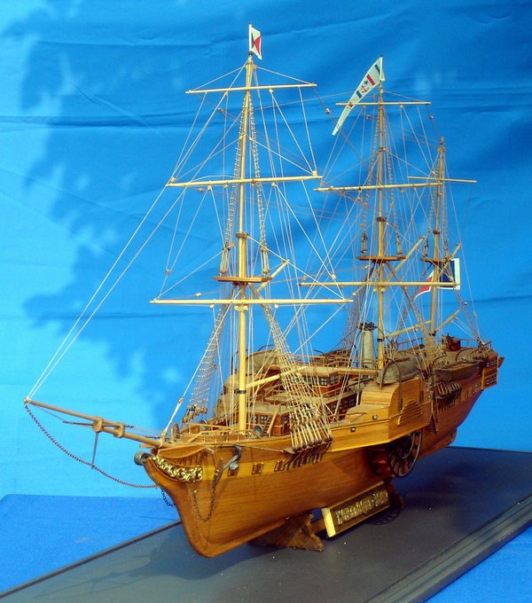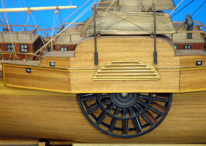 - La ricchezza delle sovrastrutture dei ponti, finemente riprodotte, con esecuzione e fedeltà di scala, le caratteristiche ruote a pale e la classica alberatura conferiscono al modello un aspetto nuovo e originale. Solo gli accessori del ponte e i disegni sono della scatola di montaggio