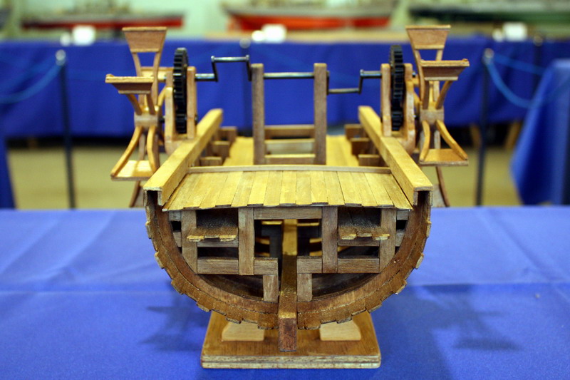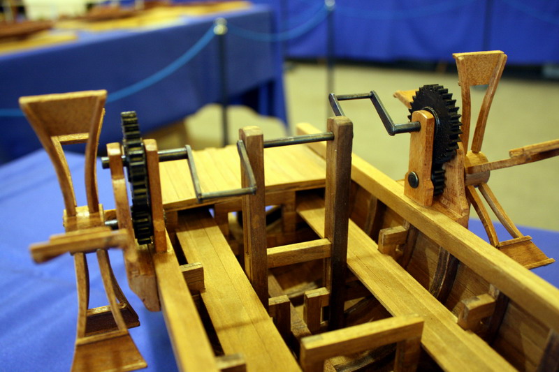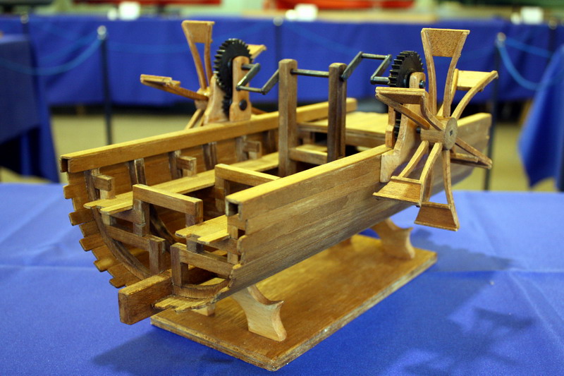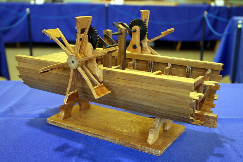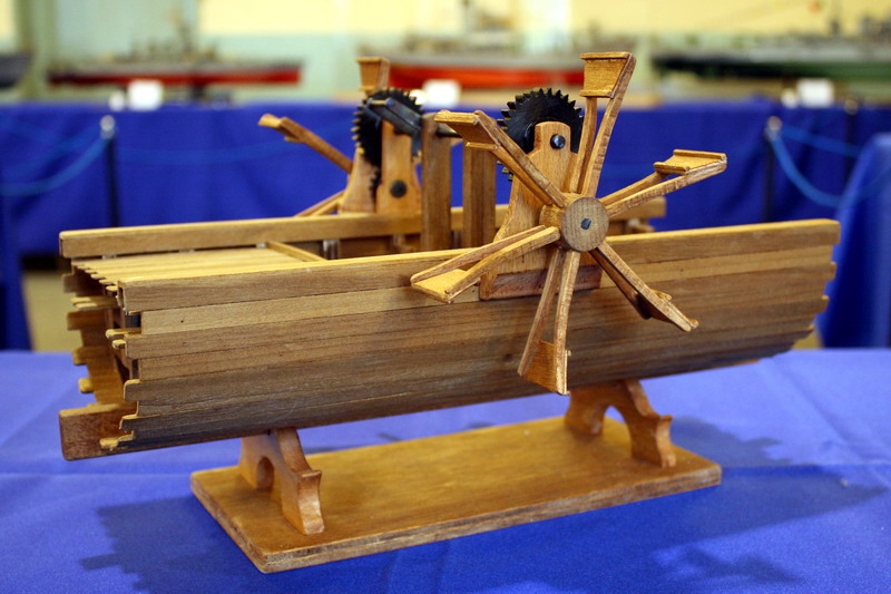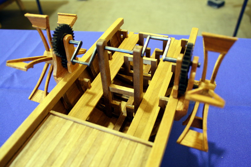 Leonardo da Vinci considerò il fatto che una corrente di acqua faceva girare una ruota munita di pale. Questo consentiva di mettere in movimento un albero al quale venivano collegate le macchine operatrici. Facendo il ragionamento inverso ipotizzò che un albero, azionato manualmente grazie a delle manovelle, poteva mettere in movimento una sorta di ruota provvista di pale. Questo sistema, montato su una imbarcazione, consentiva alle pale di immergersi in successione nell’acqua, facendo avanzare il natante. Evoluzione di questa idea è la barca a pedali.