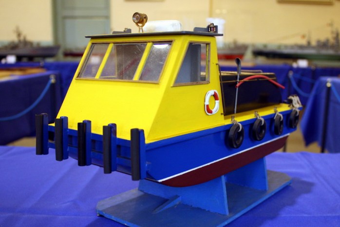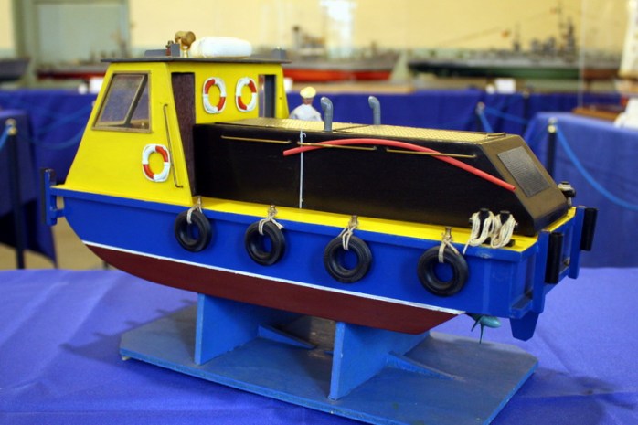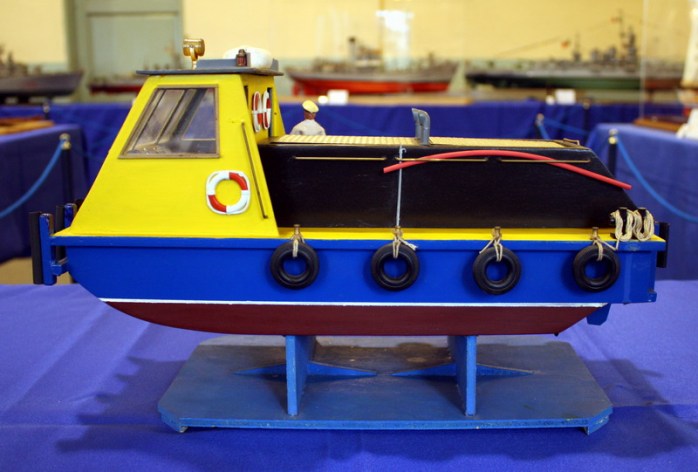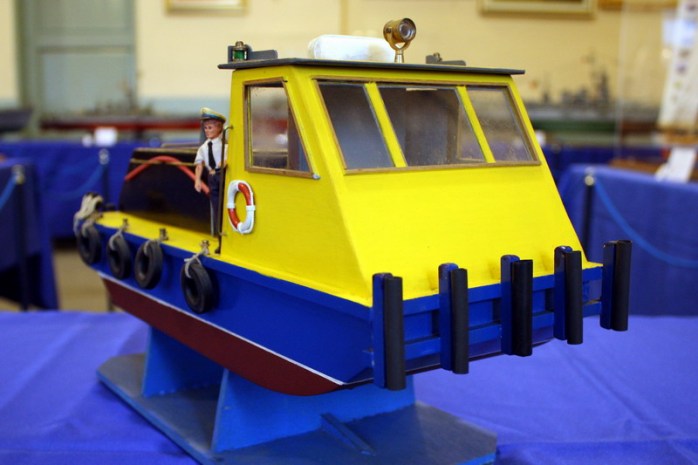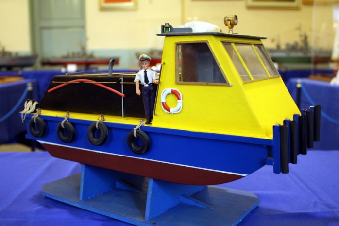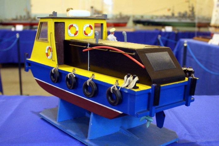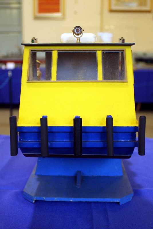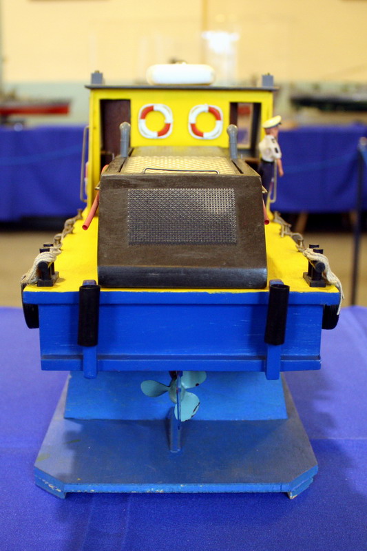 Sungo, rimorchiatore a spinta fluviale, modello di un prototipo sperimentale di battello azionato ad energia solare. Il modello e attrezzato con pannelli fotovoltaici che, esposti alla luce del sole, producono energia elettrica. Questa è impiegata per caricare le batterie del battello e gli consentono di navigare.