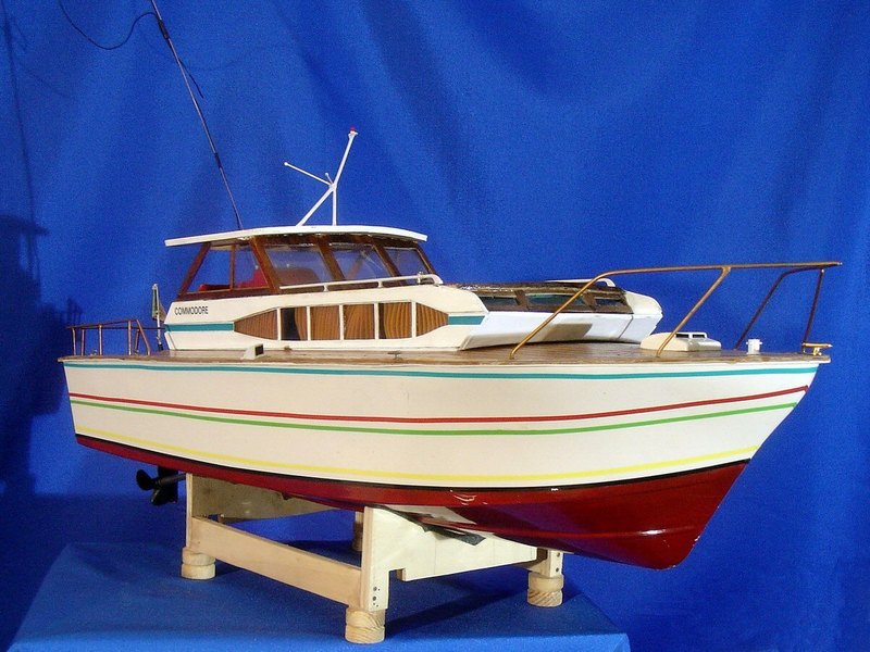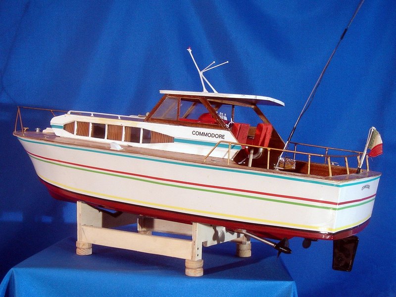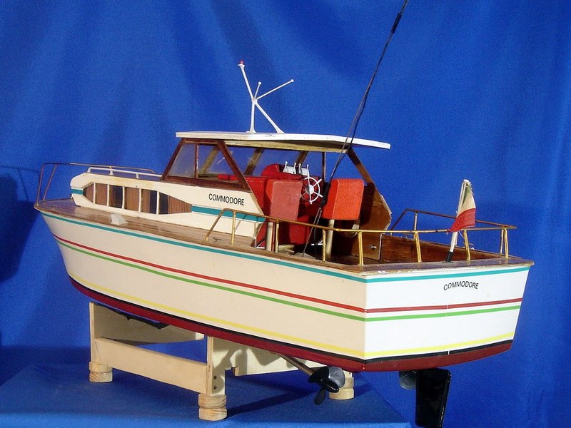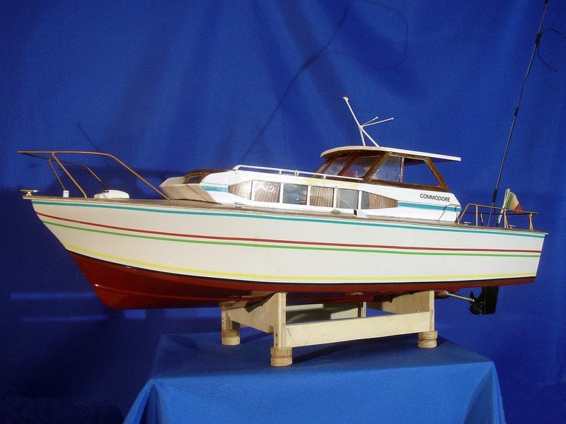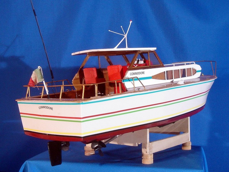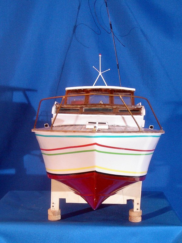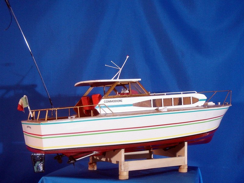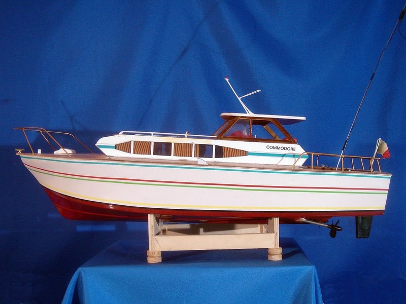 Il modello realizzato da scatola di montaggio della ROBBE; scafo in ABS motorizzato con due motori elettrici classe 500, alimentazione 6volts. Coperta realizzata in listelli di mogano.