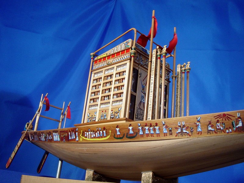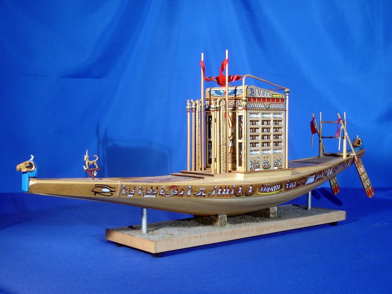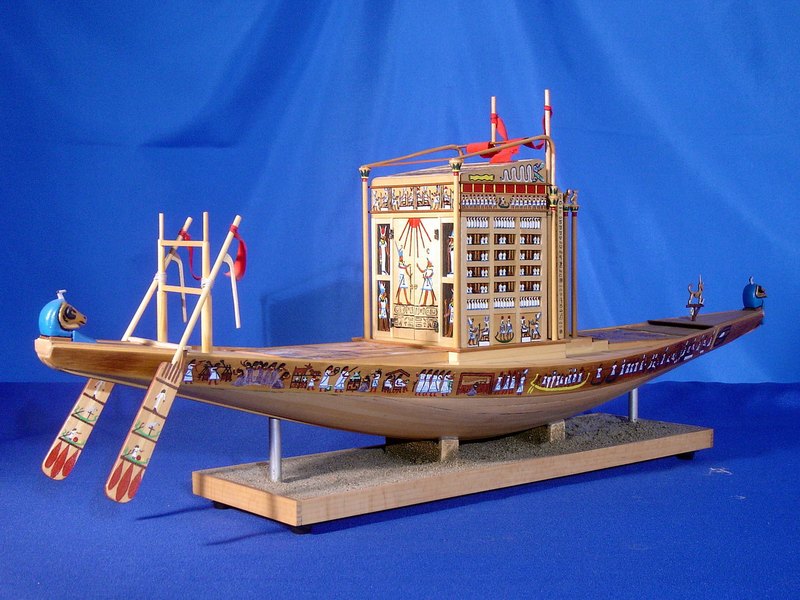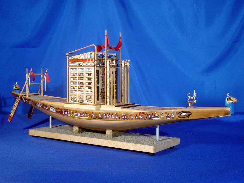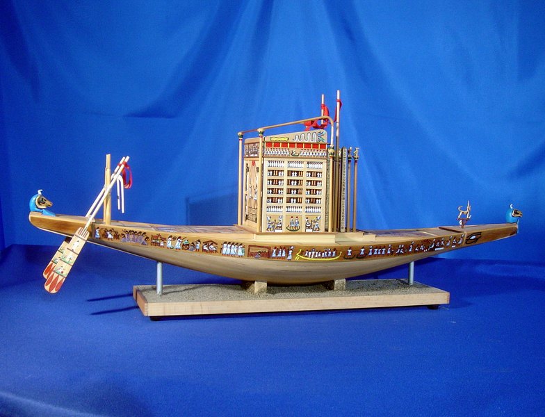 Questa imbarcazione veniva utilizzata per celebrare La festa di Opet, in onore al dio Amon. Sotto la XVIII dinastia (1555-1305 a.C.) l’annuale festa di Opet, che si svolgeva nel 15° giorno del secondo mese dell’inondazione (fine agosto-inizio settembre) vedeva l’occasione dell’uscita solenne di AMMONE di KARNAK di recarsi in visita al tempio di LUXOR (OPET) distante 3 km. Da KARNAK raggiungeva il DROMOS (viale costeggiato da sfingi) e si dirigeva verso il tempio di LUXOR. Durante il tragitto, la processione si fermava nei luoghi di sosta previsti per le preghiere e le offerte. Il ritorno a KARNAK avveniva su una apposita imbarcazione, risalendo il corso del Nilo.