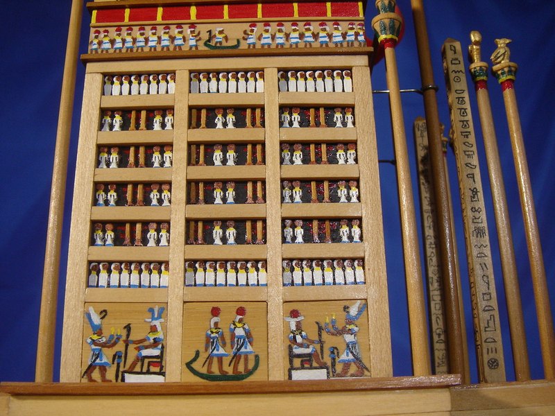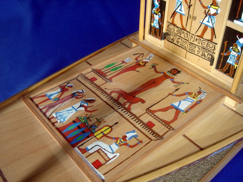 - Il modello è stato interamente auto costruito sulla base di accurate ricerche. Le informazioni sono state ricavate da testi storici e nel corso di visite al Museo Egizio del Cairo. Le stesse incisioni riprendono fedelmente i significati originali.