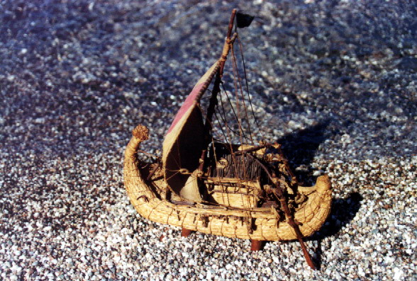 A Tenerife, isola dell’arcipelago delle Canarie, c’è uno strano museo che conserva dei modelli, in grandezza naturale, di altrettante strane imbarcazioni. Si tratta delle imbarcazioni costruite dal grande esploratore norvegese Thol Heyerdhl. Tali imbarcazioni sono state costruite tutte in balsa, giunchi, fibre vegetali e papiro. Tra esse primeggia, in tutto il suo splendore, la Ra II. Fu costruita, in prossimità delle piramide egizie, nel 1967 da un team di indiani boliviani del lago Titicaca, unici specialisti nell’uso delle fibre vegetali, interamente in papiro. Il modello fu ispirato dalle raffigurazioni riportate sugli antichi affreschi delle tombe egizie. Heyerdhl, una volta trasportata la Ra in Marocco, prese il mare facendo rotta per le isole Antille. Con questa impresa, voleva dimostrare che tali antiche imbarcazioni, sin dal periodo egizio, erano in grado di attraversare l’Atlantico e che i contatti tra i “due mondi” erano avvenuti molto prima di quanto si pensasse. La Ra però non raggiunse mai le coste americane, naufragò quasi prossima alla meta. La mancanza della gomena che teneva in tensione la ruota di prua determinò l’abbattimento della stessa con conseguente imbarco d’acqua. L’impresa fu ripetuta l’anno successivo con la Ra II che, provvista dell’indispensabile gomena che questa volta tratteneva ben salda la ruota di prua alla base dell’albero a pioli, raggiunse felicemente Bahama.