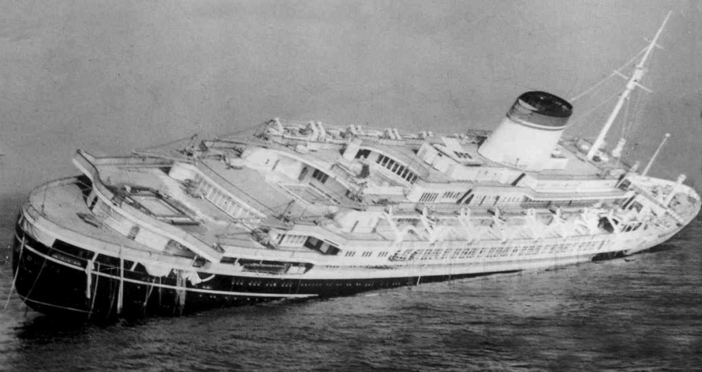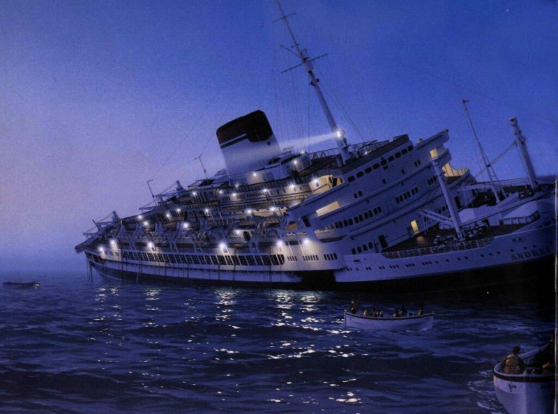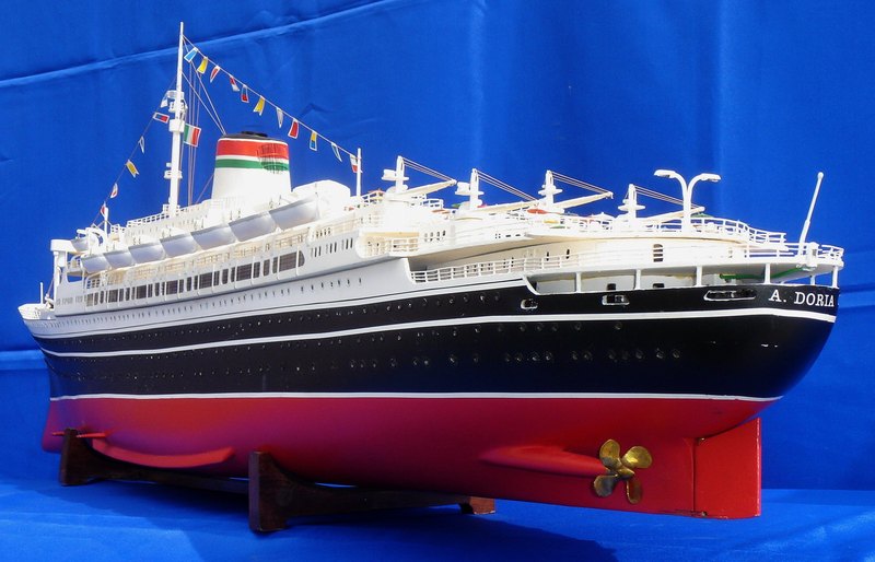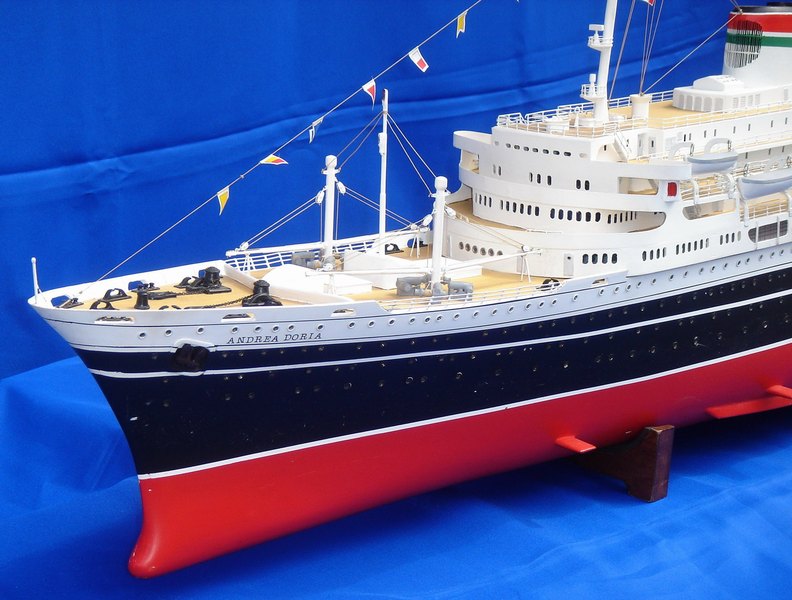 Nave passeggeri costruita dai cantieri Ansaldo di Genova. Fu varata nel 1952. Effettuò il suo primo viaggio sulla rotta Genova New-York all’inizio del 1953. Al momento della sua entrata in servizio era la nave ammiraglia della Società di navigazione Italia. Al comando del Cap. Sup. di L.C. Piero Calamai effettuò, sempre su quella rotta, 50 traversate finché, alle 23.09 del 25 luglio 1956, fu speronata dal transatlantico Stockholm, della Swendish-American-Line. L’Andrea Doria, con a bordo 1134 passeggeri e 572 persone di equipaggio, era diretto a New York ed aveva da poco superato la nave-faro dell’isola di Nantucket. Lo Stockolm, che era partito dal porto di New York nella tarda mattinata, era diretto in Europa. La dinamica dell’incidente non fu mai completamente chiarita. Sta di fatto che l’Andrea Doria fu colpita sul lato dritto, sotto il ponte di comando. La prua affilata dello Stockolm, rinforzata per affrontare la navigazione in mari ghiacciati, penetrò nello scafo della nave italiana per ben 9 metri, un terzo della larghezza totale. Le navi rimasero incastrate per qualche momento finché l’investitore riuscì a liberarsi dando macchine indietro a tutta forza. L’andrea Doria si piegò sul lato Dritto e lo sbandamento, accentuato anche dal tentativo di avanzare con la motrice superstite di sinistra, fu tale da non consentire la messa a mare delle lance di sinistra. L’Andrea Doria chiese a lungo assistenza ma le navi da carico accorse, di modeste dimensioni, non potevano fare molto né molto poteva fare lo Stockolm impedito a rinunciare alle proprie scialuppe finché non fosse stato certo della propria sopravvivenza. Solo quando intervenne il vecchio e grande transatlantico francese “Ile de France” che, con le sue 45.000 tonnellate, si poté avvicinare alla nave in pericolo e utilizzare le proprie scialuppe, fu possibile quella serrata opera di trasbordo che permise di portare in salvo passeggeri ed equipaggio dell’Andrea Doria. Si dovettero comunque lamentare 44 morti sull’Andrea Doria e cinque sullo Stockholm. L’Andrea Doria, dopo un’agonia durata undici ore, si inabissò alle 10.09 del 26 luglio 1956.
