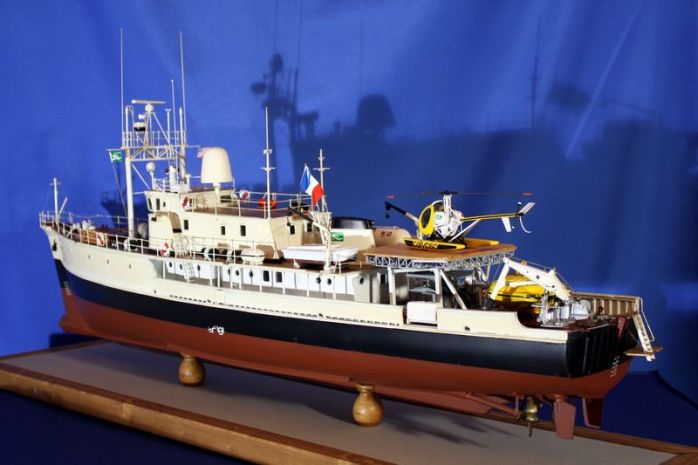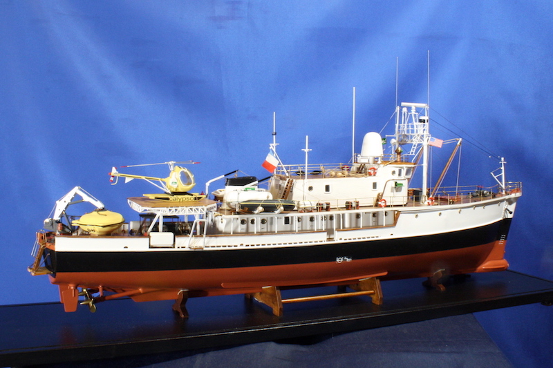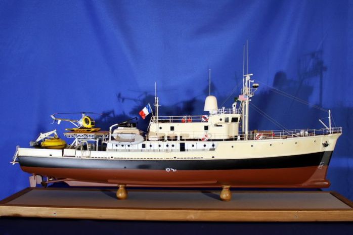 La nave, con lo scafo in legno, fu costruita negli USA nel 1942 per conto della Royal Navy Britannica che la utilizzò nel Mediterraneo come dragamine. Alla fine della seconda guerra mondiale rimase a Malta e fu radiata dal servizio nel 1947. Ribattezzata Calypso, in onore dell’omonima ninfa, prestò servizio di traghetto fra Malta e Gozo. Nel 1950 fu acquistata dal magnate irlandese T.L. Guinness che la affittò a Cousteau al prezzo simbolico di un franco francese all’anno. Cousteau la trasformò in nave per ricerche oceanografiche e appoggio per immersioni attrezzandola adeguatamente. Vi installò anche un locale per osservazioni subacquee posta tre metri sotto la linea di galleggiamento.