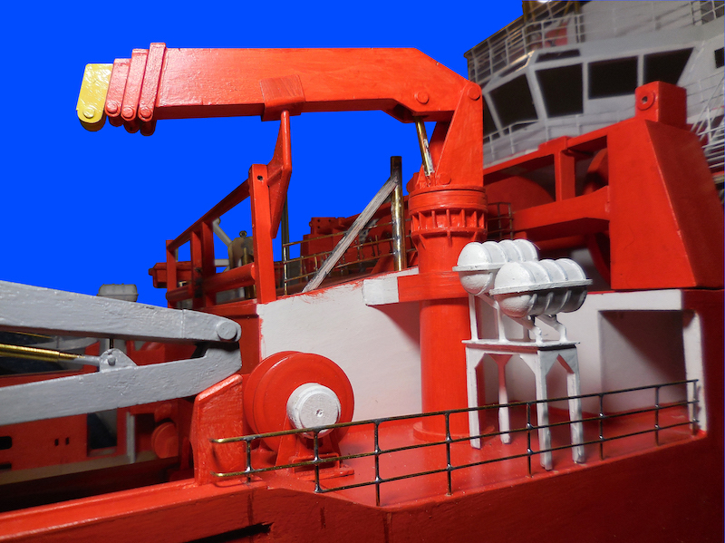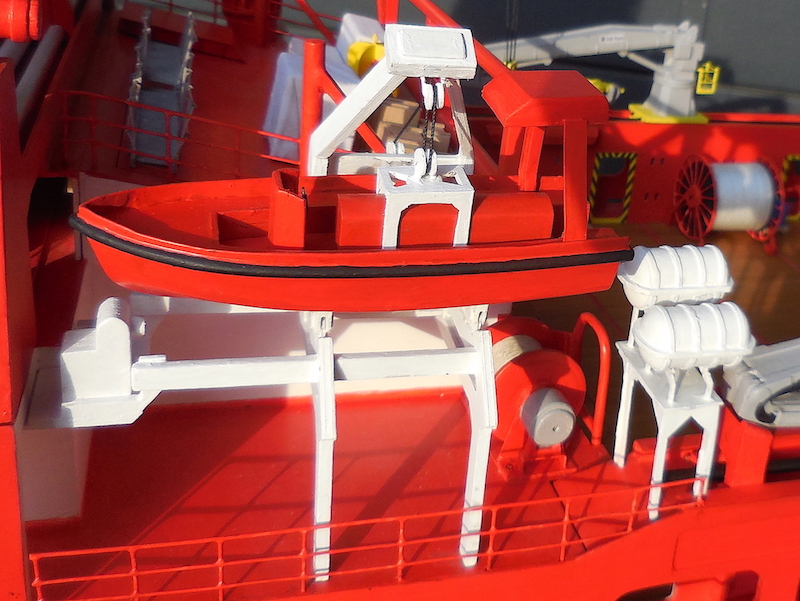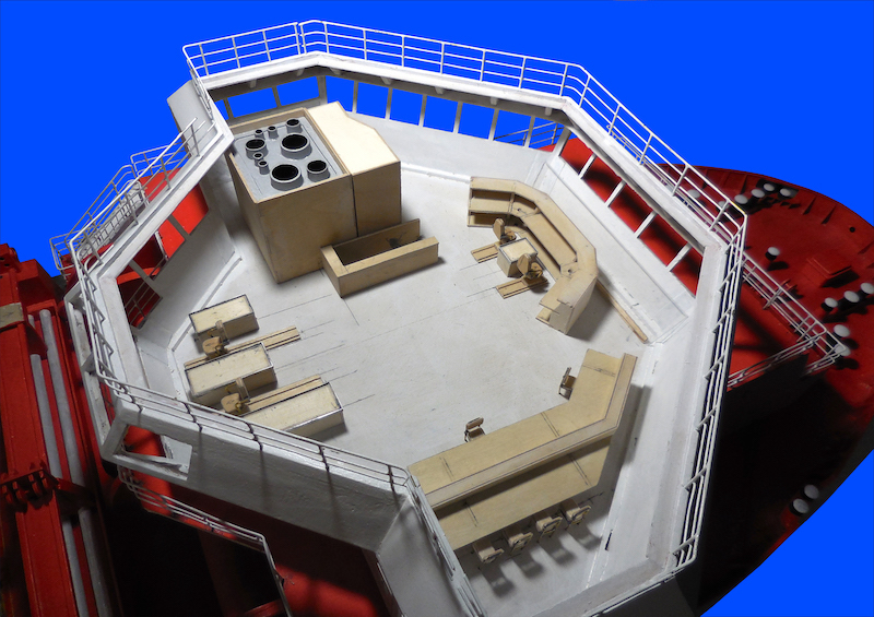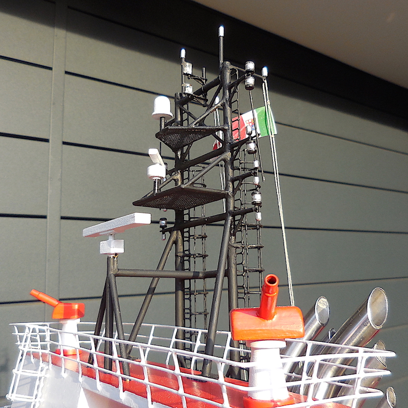 La plancia è completamente arredata. Il modello è dotato di illuminazione della tuga e della plancia. E’ dotato, altresì, dei fanali di navigazione.