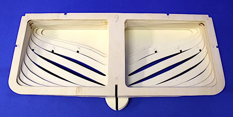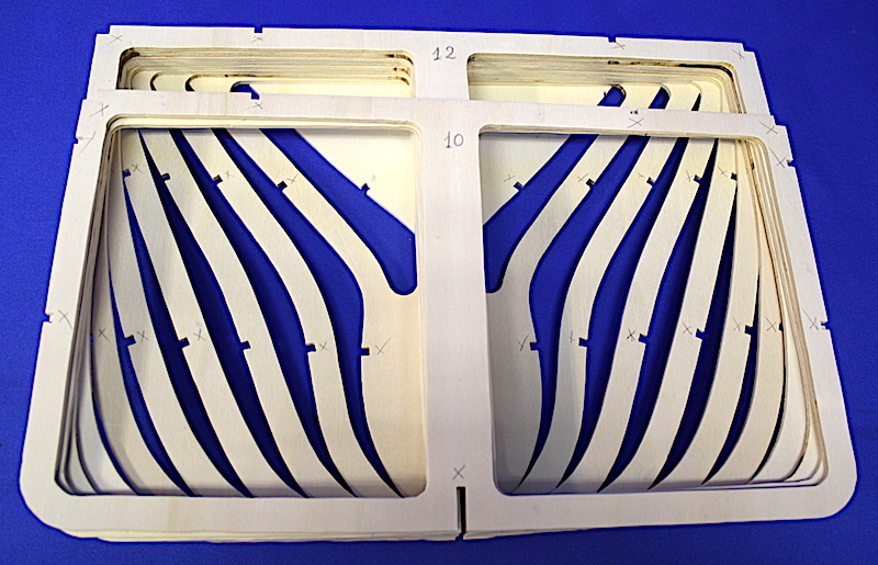 Dal piano di costruzione sono stati rilevati i profili delle ordinate che sono state poi accuratamente ritagliate. Sono stati ritagliati anche la chiglia e i dritti di prora e di poppa.