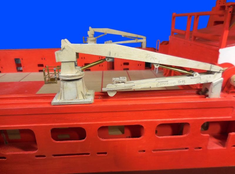 Completata la costruzione dei componenti principali è stata applicata una prima mano di colore in modo da procedere con la migliore rifinitura fatta di ripetuti passaggi di carteggiatura, stuccatura e verniciatura. In parallelo è continuata la costruzione degli altri elementi strutturali.
