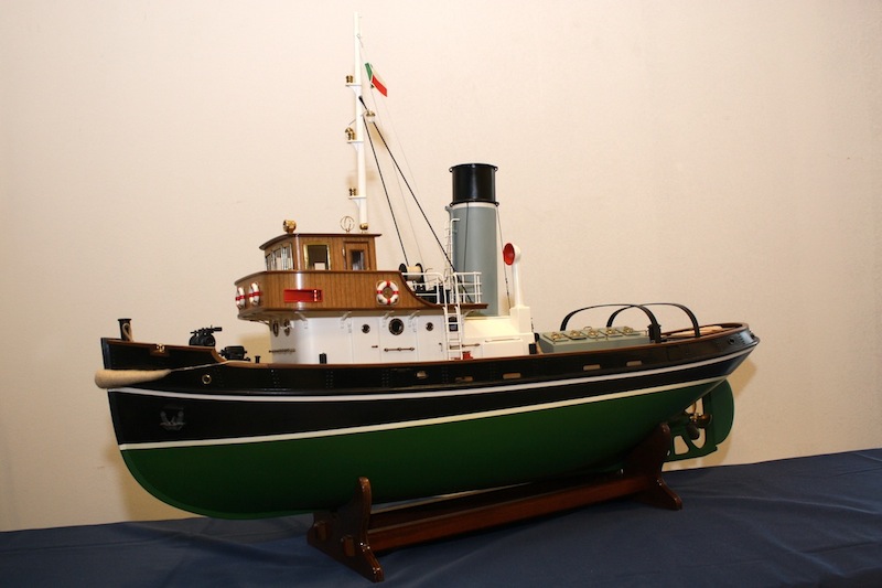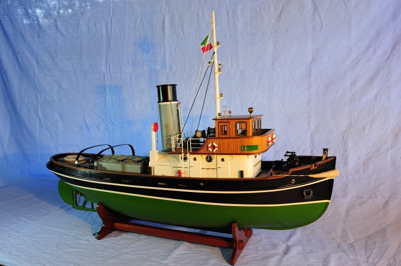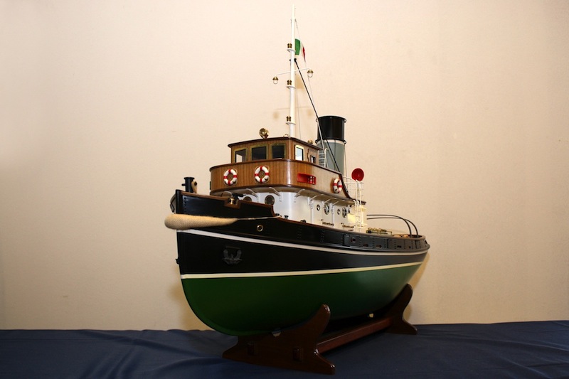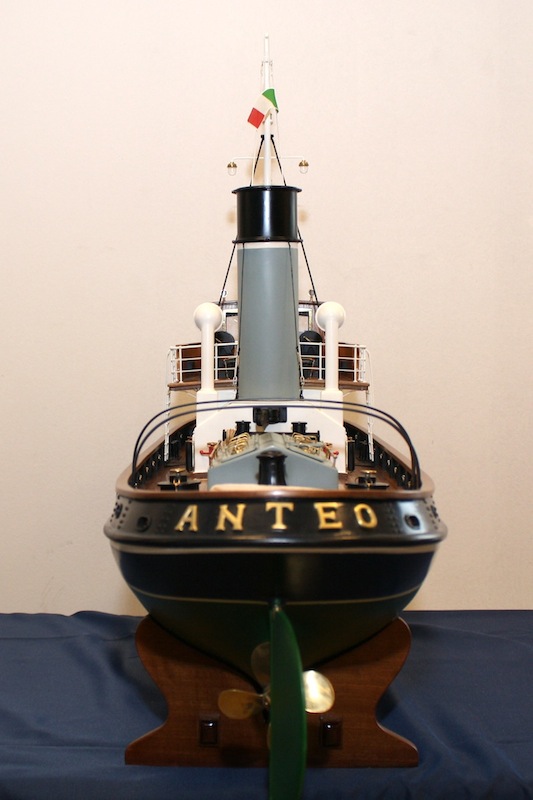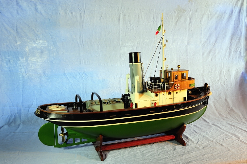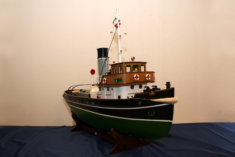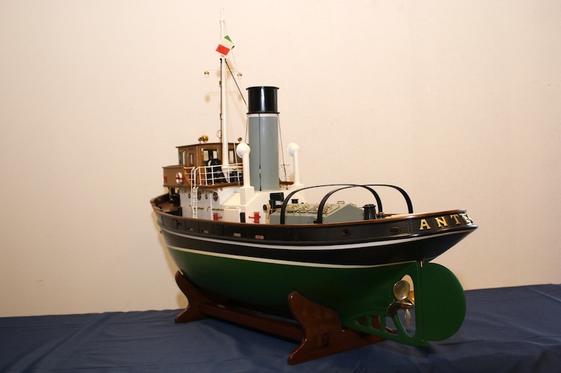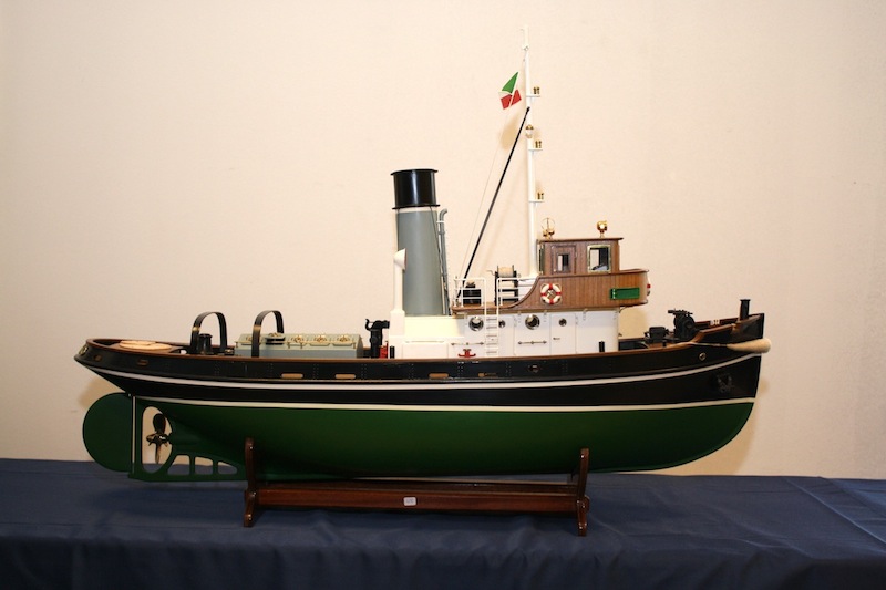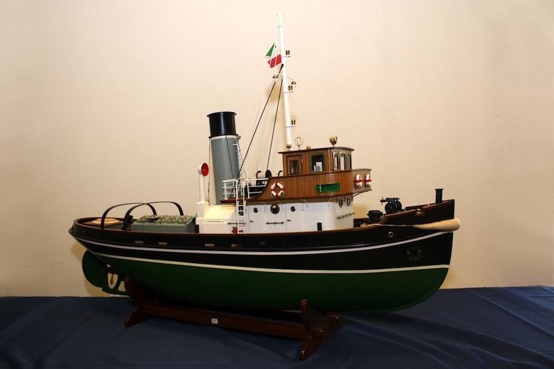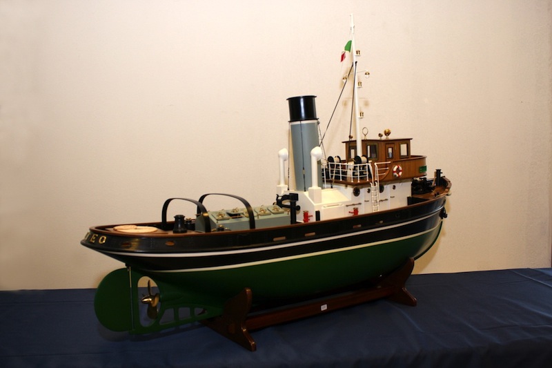 Modello interamente auto costruito utilizzando i disegni della scatola di montaggio della Panart Model, ridisegnati in scala 1:23,5 per consentire l’installazione di una motrice a vapore e relativa caldaia, auto costruiti, accanto al motore elettrico, in funzione di riserva. Il modello è navigante e radio comandato con le funzioni: marcia della motrice a vapore, marcia del motore elettrico, intercettazione di emergenza gas alimentazione caldaia, sgancio motrice a vapore e innesto motore elettrico e manovra timone.