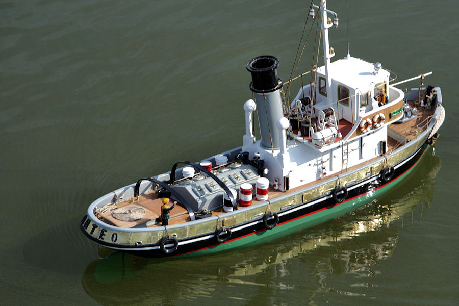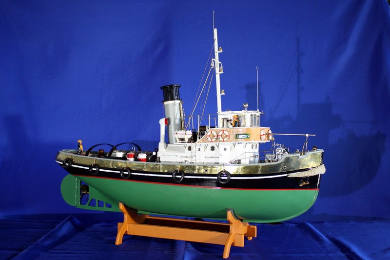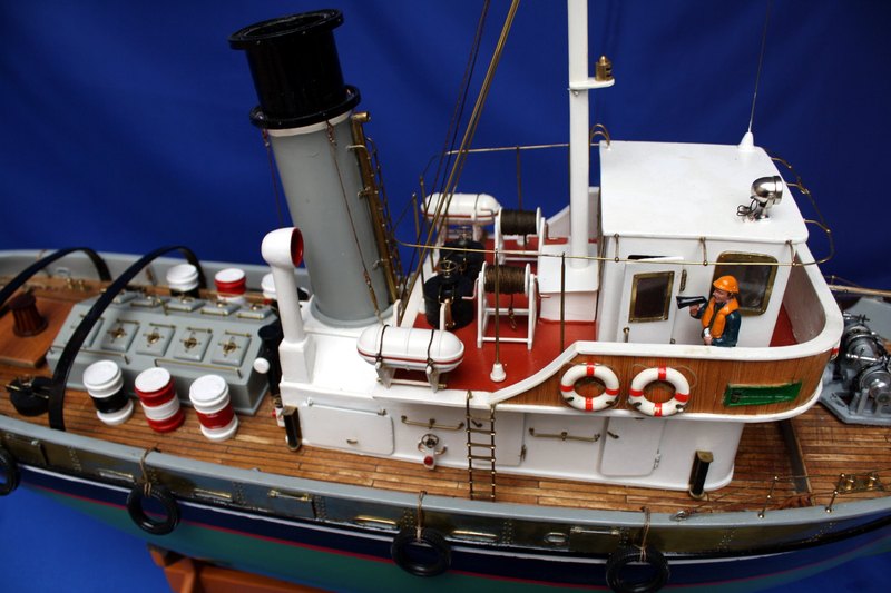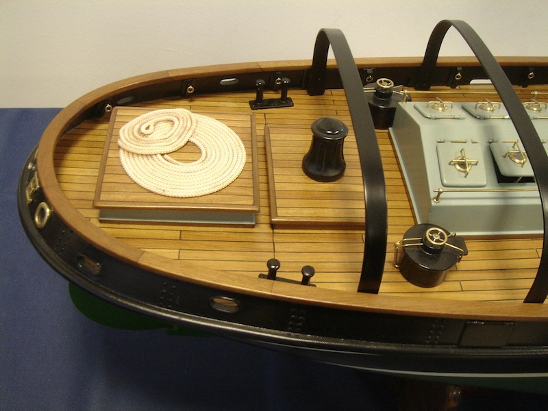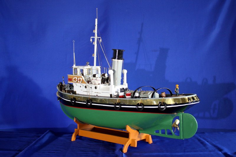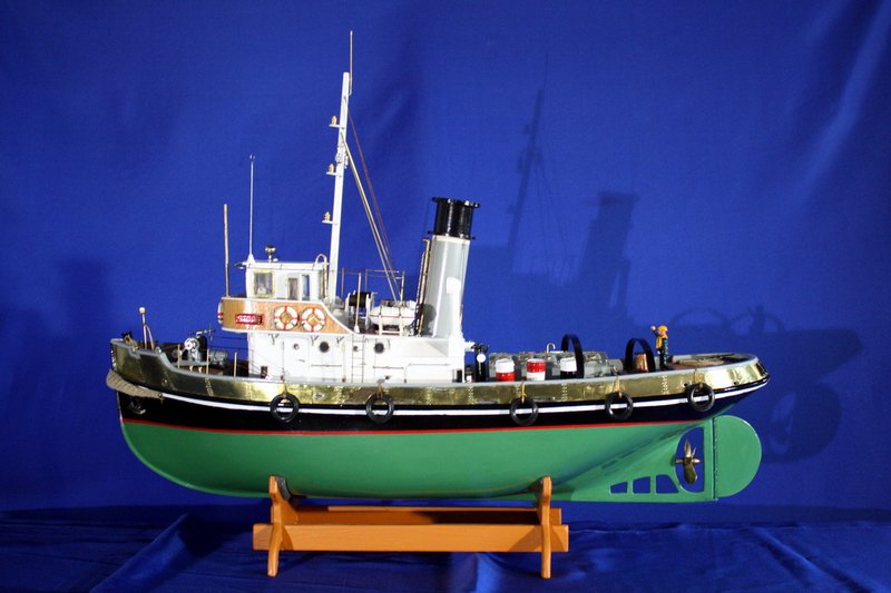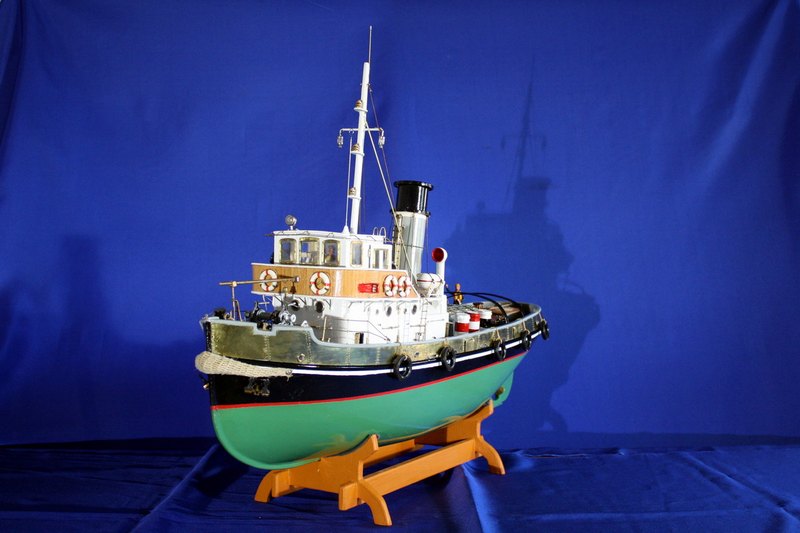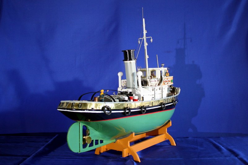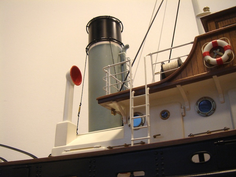 Modello interamente auto costruito utilizzando i disegni della scatola di montaggio della Panart Model, ridisegnati in scala 1:23,5 per consentire l’installazione di una motrice a vapore e relativa caldaia, auto costruiti, accanto al motore elettrico, in funzione di riserva. Il modello è navigante e radio comandato con le funzioni: marcia della motrice a vapore, marcia del motore elettrico, intercettazione di emergenza gas alimentazione caldaia, sgancio motrice a vapore e innesto motore elettrico e manovra timone.