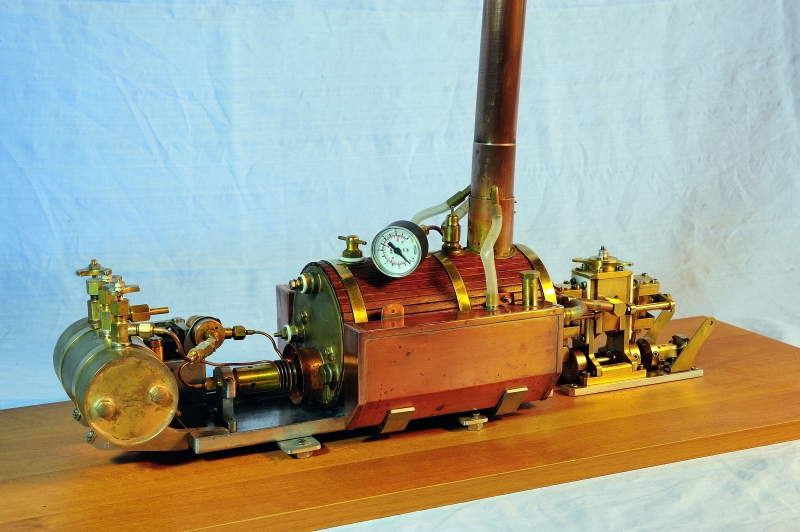Il sistema di propulsione a vapore del rimorchiatore Anteo è costituito da una motrice alternativa a due cilindri oscillanti, alimentati con vapore a una pressione di circa 2,5 bar, prodotto da una caldaia avente una capacità di 1250 cm³ , alimentata con gas da bomboletta. La caldaia è dotata di valvola di sicurezza tarata a 3 bar. I cilindri della motrice hanno un alesaggio di 13 mm e i pistoni una corsa di 18 mm. Motrice e caldaia sono state realizzate in base a documentazione pubblicata sulla rivista Marine Revue Bateaux.