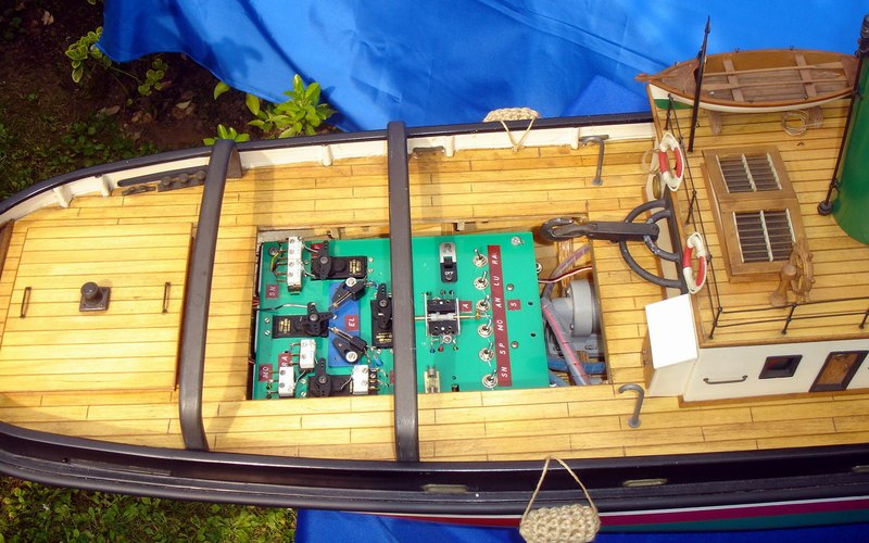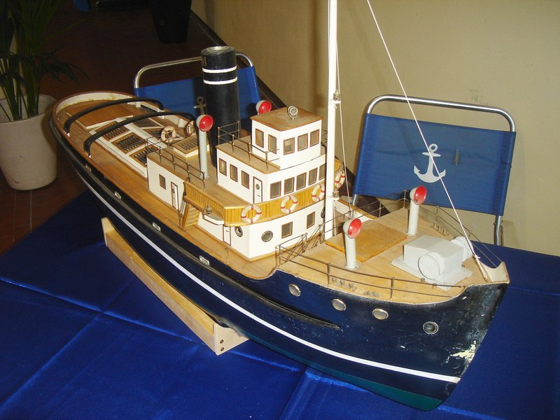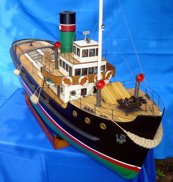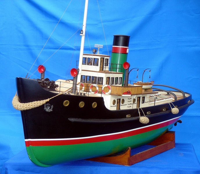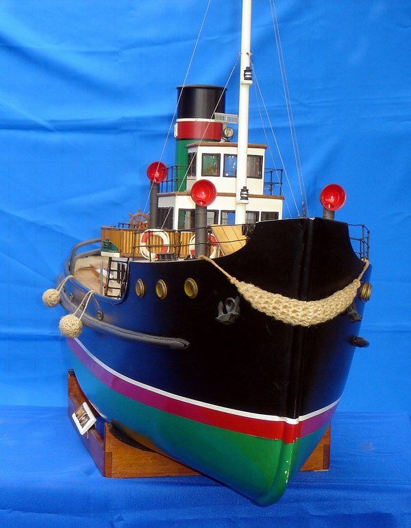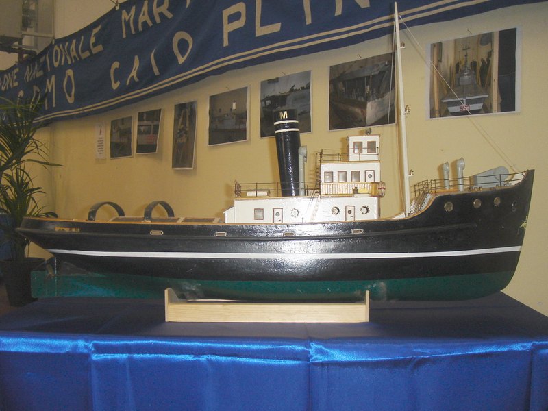 Il modello è stato auto costruito in base ai disegni, utilizzando i soli accessori del ponte, della scatola di montaggio della MOVO. La scala riportata sui disegni si riferisce presumibilmente alle dimensioni di rimorchiatori dell’epoca. Il modello è navigante ed è dotato di due eliche controrotanti azionate da due motori elettrici indipendenti. Un radiocomando, oltre altre al governo della navigazione, attiva le seguenti funzioni: sirena da porto e da nebbia, fumo dalla ciminiera, rumore motore diesel, azionamento verricello salpa ancore e radar, illuminazione. E’ previsto l’arresto di uno dei motori di propulsione per facilitare la virata del modello.