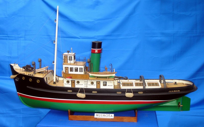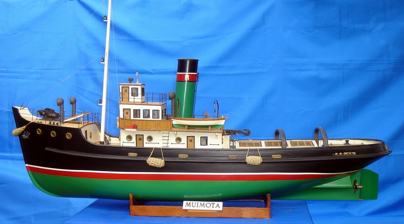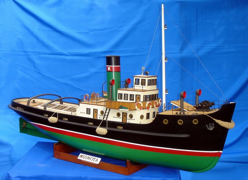 Il modello del Muimota è di pura fantasia e non rappresenta alcun rimorchiatore esistito. La sua creazione ha una un’ origine commerciale particolare. Nei lontani anni 70, la ditta MOVO (acronimo di Modelli Volanti), che produceva aeromodelli, aveva in magazzino una grande quantità di accessori di cui voleva disfarsi. Fu allora che, al titolare della ditta e a un suo disegnatore, venne l’idea di creare alcuni modelli di navi impiegando tali accessori. Così nacquero il Muimota, l’Altan, il Cadal e altri. Trovandosi i due a Bruxelles , davanti al famoso Atomium (costruzione- monumento che rappresenta i legami atomici di un cristallo di ferro), sarebbe venuta loro l’idea di dare il nome Muimota al modello allora in costruzione, derivandolo da Atomium, letto al contrario.