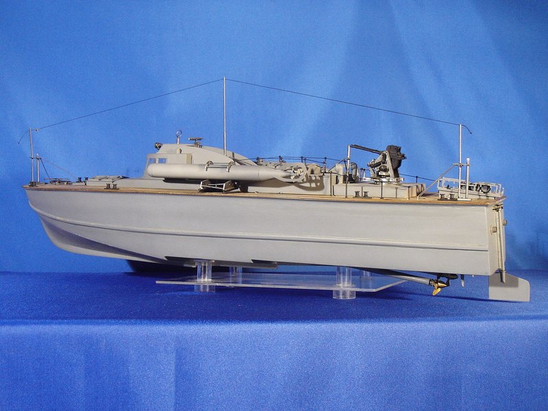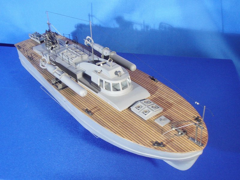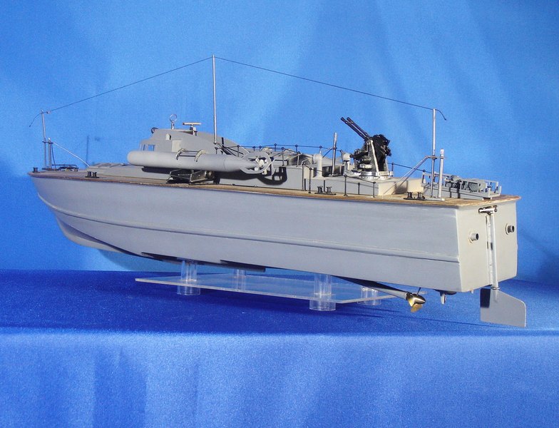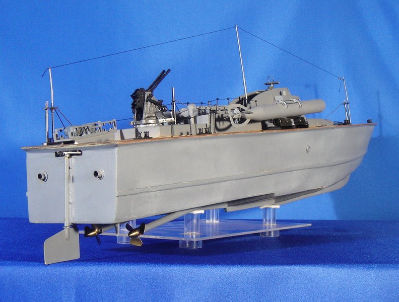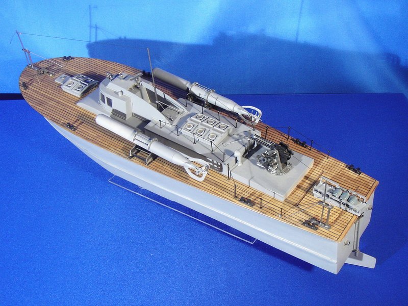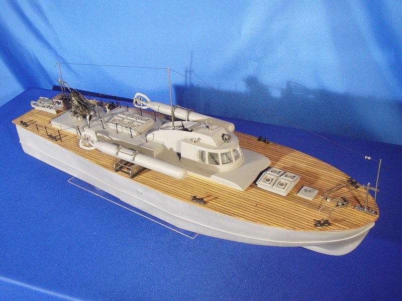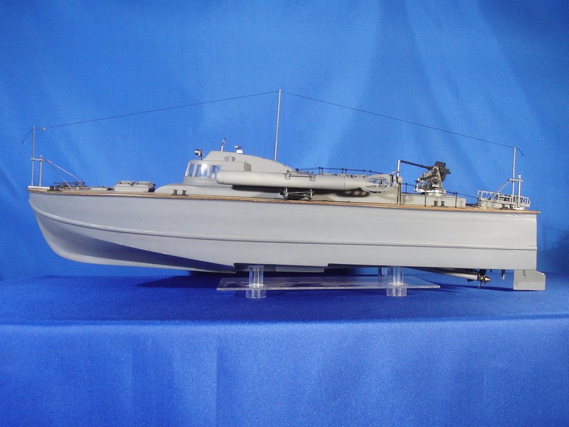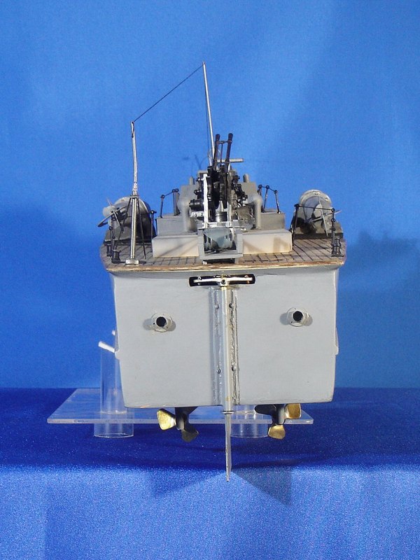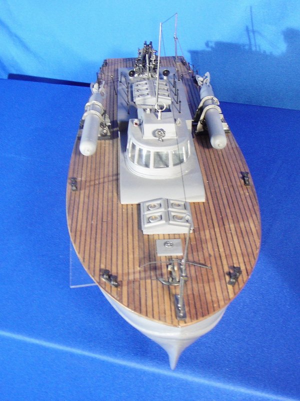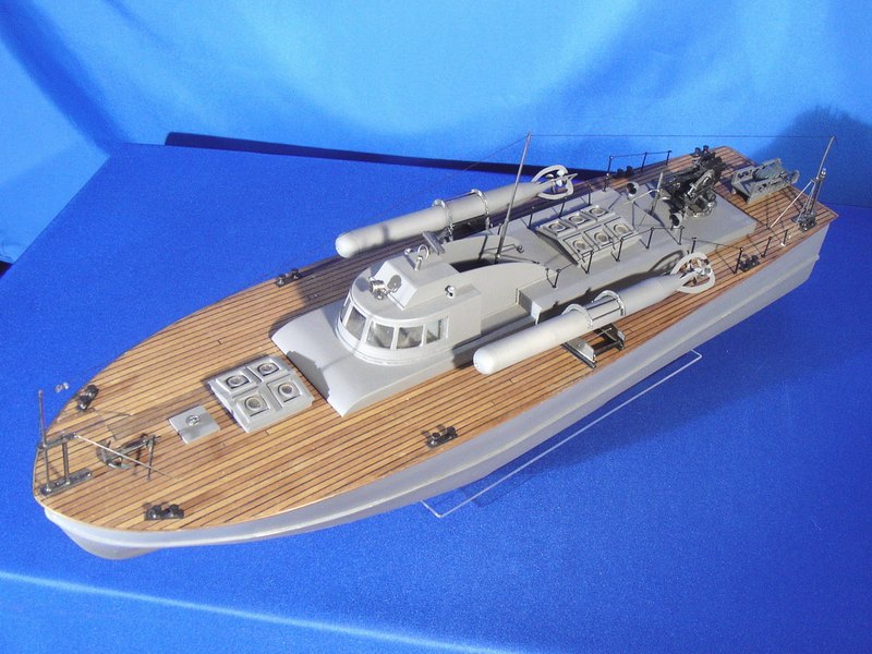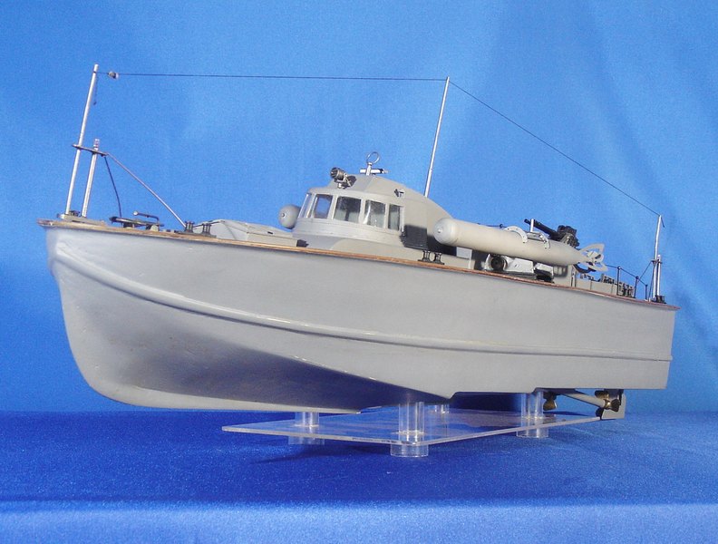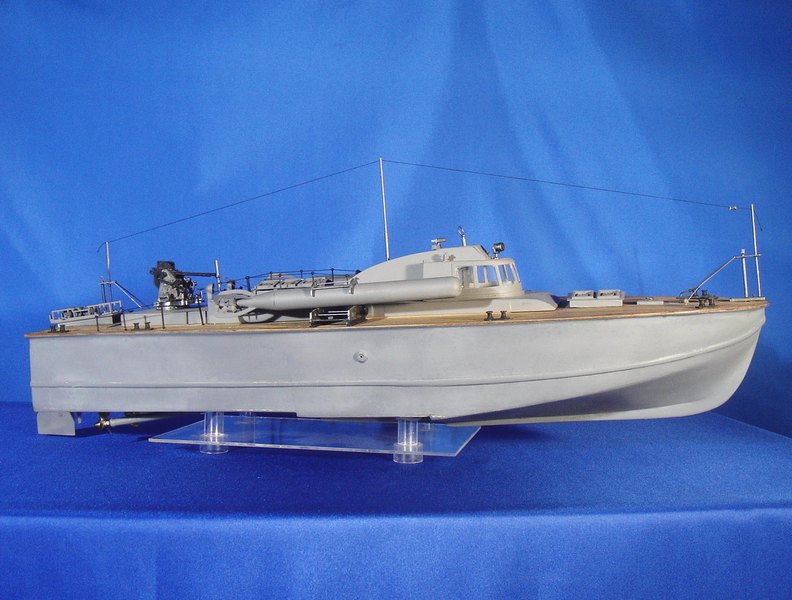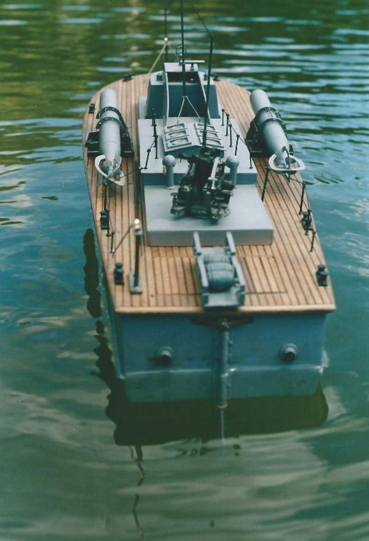 Il modello navigante è dotato di un radiocomando pluri-canale. La propulsione è data da due motori elettrici con regolatore elettronico di velocità. Sul ponte di poppa,troviamo una mitragliatrice-binata, che ruota di 360°; un circuito elettronico ne simula il rumore dello sparo. Le due catapulte lancia-siluri posizionate sui fianchi, sono autocostruite in ottone e funzionanti indipendentemente l’una dall’altra, con un sistema di rinvii azionati da due micro-servi, lanciano il siluro in acqua. Il modello, dispone di regolatore sequenziale per l’accensione indipendente delle luci di via e di segnalazione sui jack di prua e di poppa.