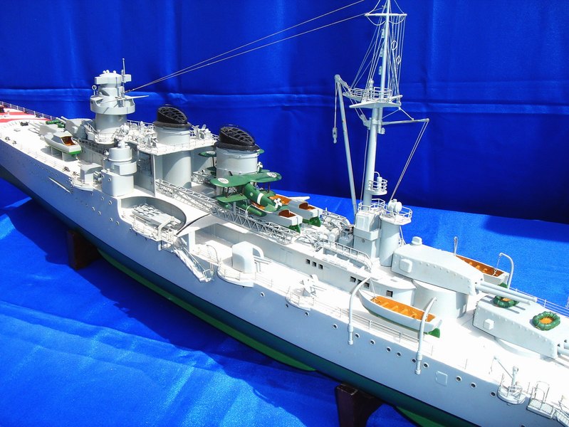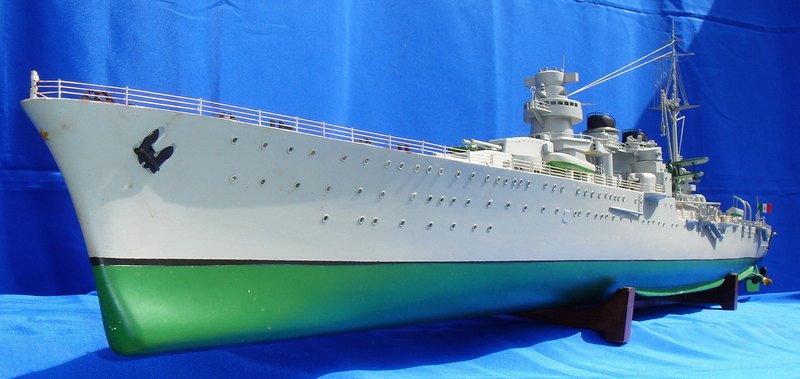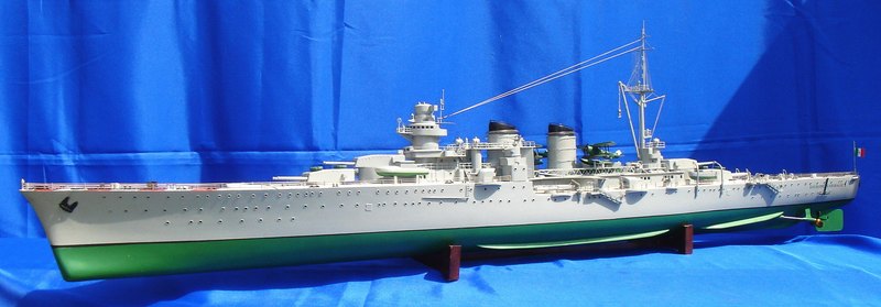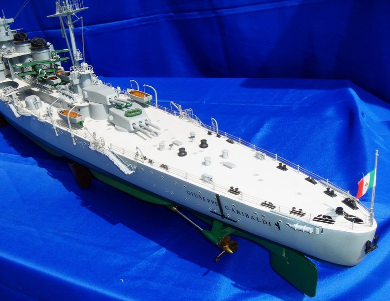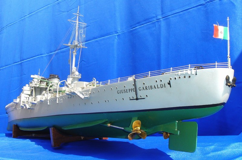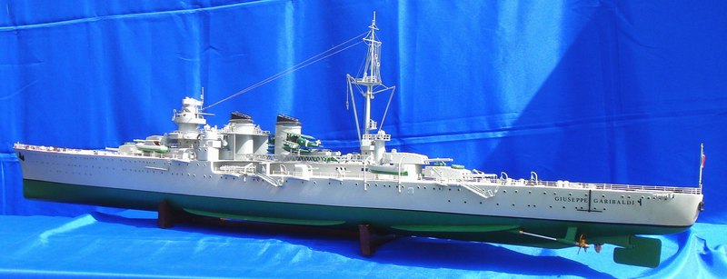 Il Giuseppe Garibaldi è stato un incrociatore della Regia Marina italiana e successivamente della Marina Militare diventando dopo radicali lavori di trasformazione la prima unità navale missilistica italiana. Alla sua entrata in servizio il “Garibaldi” era classificato incrociatore leggero, in quanto secondo il Trattato navale di Londra del 1930, erano classificati tali gli incrociatori con cannoni da 6.1 pollici (155mm) o più piccoli, mentre quelli con cannoni fino a 8 pollici (203mm) erano definiti incrociatori pesanti. La bandiera di combattimento venne consegnata il 13 giugno 1938 dalla città di Palermo e dalla Federazione Nazionale Volontari Garibaldini, dopo che il 5 maggio la nave aveva preso parte nel golfo di Napoli alla parata navale in onore del Cancelliere tedesco Hitler in occasione della visita in Italia. L’unità faceva parte della classe Duca degli Abruzzi, ultima evoluzione degli incrociatori leggeri della classe Condottieri. Le navi del tipo “Duca degli Abruzzi” presentavano un perfetto equilibrio fra protezione, velocità, tenuta di mare e armamento, grazie all’esperienza acquisita dalla realizzazione delle precedenti classi e i miglioramenti introdotti richiesero un aumento del dislocamento, che per queste unità superò le 9.000 tonnellate, con un incremento di dimensioni, che portarono la lunghezza dello scafo fuori tutto a 187 metri, risultando quindi tra le più lunghe unità della Regia Marina, precedute soltanto dalle Littorio, dai Trento e dal Bolzano. Particolare cura era stata posta nello studio della corazzatura. La protezione verticale era costituita da tre paratie, di cui la prima di 30 mm di acciaio al nichelcromo, la seconda di 100 mm di acciaio cementato che poggiava su un cuscino di legno con funzione ammortizzante ed una terza paratia di 12 mm con funzione di paraschegge. La protezione orizzontale era costituita da una paratia dallo spessore di 40 mm nel ponte di batteria e di spessore variabile tra i 20 e 90 mm nel ponte di coperta, mentre corazze curve dello spessore di 100 mm proteggevano i pozzi delle torri principali. La sovrastruttura presentava i due fumaioli ravvicinati e due catapulte, una per lato, che permettevano di imbarcare fino a quattro idrovolanti da ricognizione marittima IMAM Ro.43 biplani biposto a galleggiante centrale.