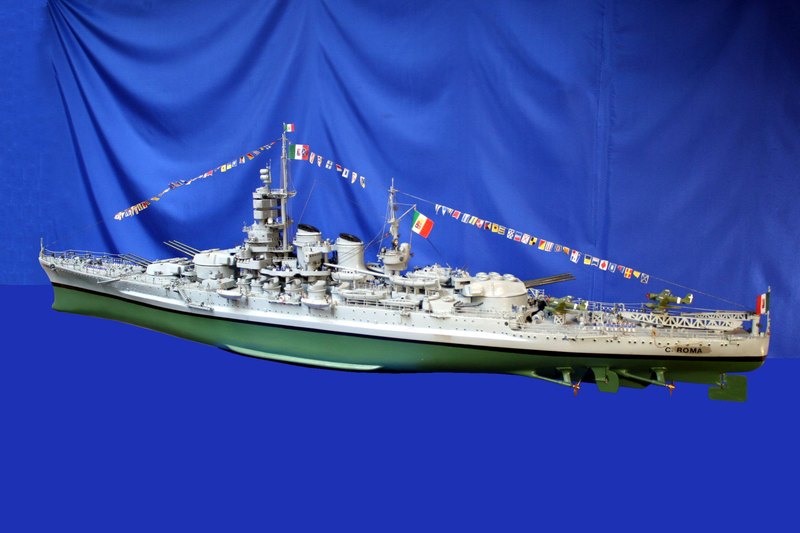 La nave da battaglia Roma, della Regia Marina italiana, fu la terza unità della classe Littorio e rappresentò il meglio della produzione navale bellica italiana della seconda guerra mondiale. Progettata dal Generale Ispettore del Genio Navale Umberto Pugliese, questa classe di navi da battaglia costituì uno dei primi esempi al mondo di unità sopra le 35.000 tonnellate, limite imposto dal Trattato navale di Washington in vigore all’epoca della progettazione e costruzione dell’unità, ma che venne disatteso di oltre il 15% per ottenere le caratteristiche desiderate, come già accaduto con la classe Zara di incrociatori pesanti. Nonostante le caratteristiche di rilievo non venne mai schierata in combattimento.