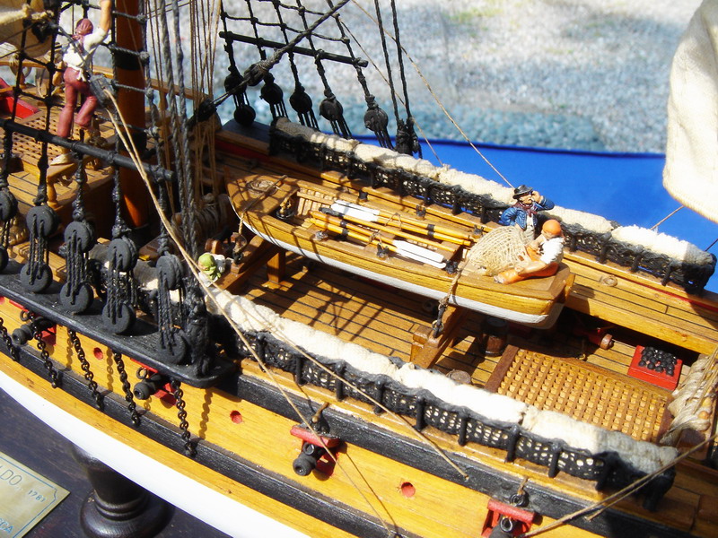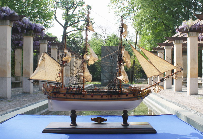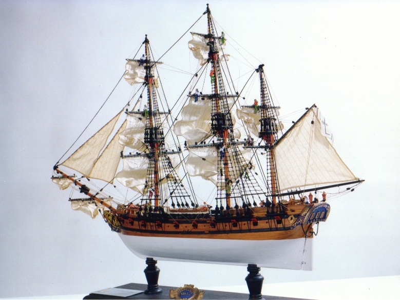 - Modello statico auto costruito realizzato secondo i disegni provenienti dal laboratorio di modellismo navale di Carta L. Augusto – Cagliari. E’ rappresentato con gli uomini alle manovre, nell’intento di spiegare le vele. Tutti i componenti, ad esclusione di alcune parti metalliche, sono stati costruiti artigianalmente. Tempo di realizzazione del modello: 800 ore