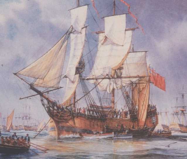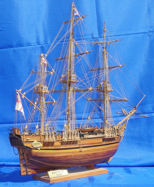 HMS Bounty, mercantile britannico da 215 tonnellate, fu costruito modificando il veliero Bethia da 230 tonnellate. Lo scafo venne rinforzato e debitamente modificato nell’alberatura e nell’armamento nonché adattato per il trasporto dei virgulti dell’albero del pane. La nave fu varata nel 1784 e venne registrata 8 giugno 1787 nella lista della Marina Reale Britannica. Il Bounty è rimasto famoso fino ai nostri giorni per L’ammutinamento di parte del suo equipaggio avvenuto nel 1789 mentre era in rotta di rientro da Tahiti verso le isole Canarie.