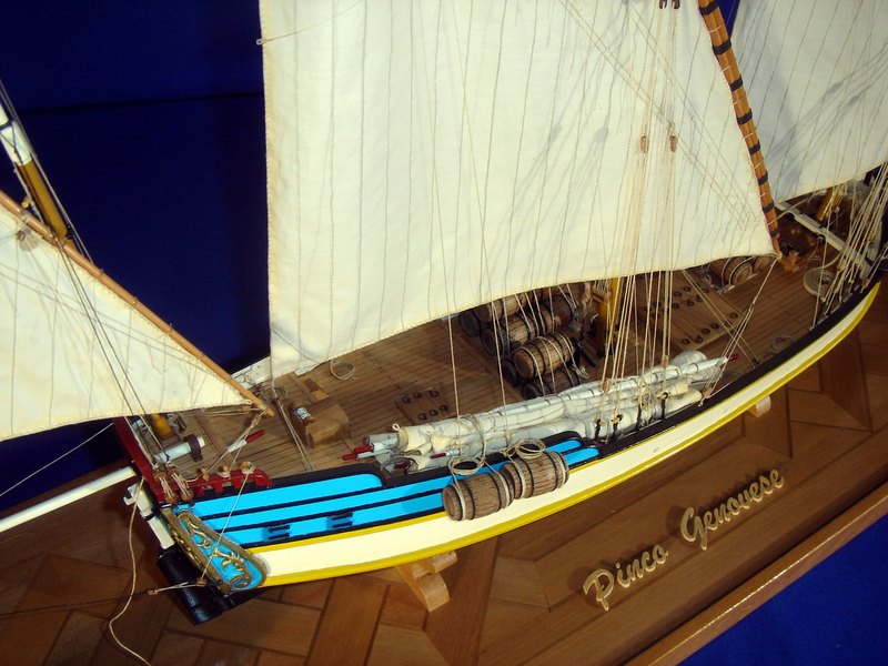 Il Pinco, di cui è sconosciuta l’etimologia, era un tipo di imbarcazione particolarmente diffuso nella marineria ligure per il trasporto di merci e per la pesca,dal XVII al XIX secolo. E’ stato il più grosso battello dell’epoca che abbia solcato il Mediterraneo usando vele latine. Tali vele erano però esageratamente grandi, tanto da rendere pericolosa la navigazione con cattivo tempo, quindi in quella circostanza il Pinco era obbligato a cambiare totalmente la velatura del trinchetto e della maestra, sostituendola con quattro piccole vele quadre, mentre la mezzana che aveva più funzioni di manovrabilità che di spinta, rimaneva immutata, ma parzialmente imbrogliata. Su questi battelli si usava piazzare una parte del loro carico (in genere barili d’olio o di vino) fuori dello scafo, appeso lungo la murata con delle cime, che passavano anche attraverso le cubie per le volate dei cannoni. A questo proposito va detto che il Pinco poteva essere armato con sei piccoli cannoni, a cui si fece spesso ricorso, come durante il periodo napoleonico, quando con questa imbarcazione si dovette forzare il blocco navale inglese per consentire l’approvvigionamento della Liguria. La scialuppa di salvataggio era solitamente trainata a rimorchio, (per far spazio al carico) e l’albero di mezzana era spostato a sinistra della mezzeria nave, per permettere di manovrare la barra del timone. Il Pinco compiva viaggi solo nel Mediterraneo, e senza allontanarsi mai troppo dalla costa. Con bel tempo e vento favorevole il Pinco era una nave molto veloce e manovriera.