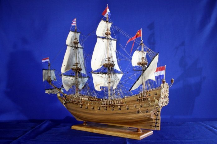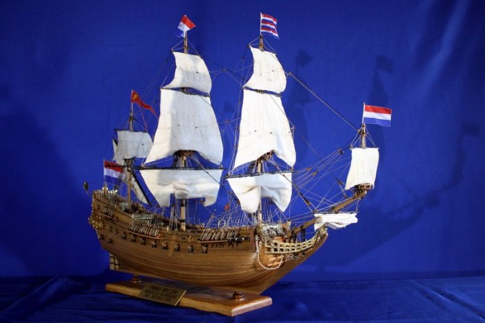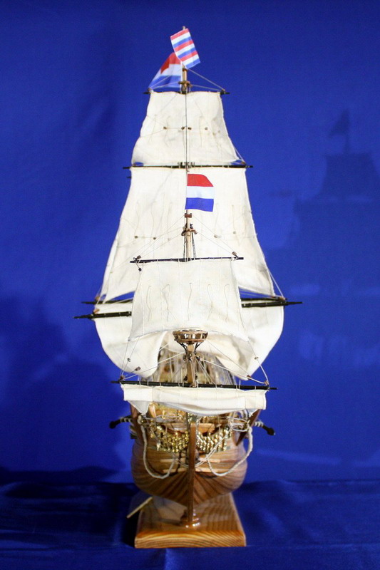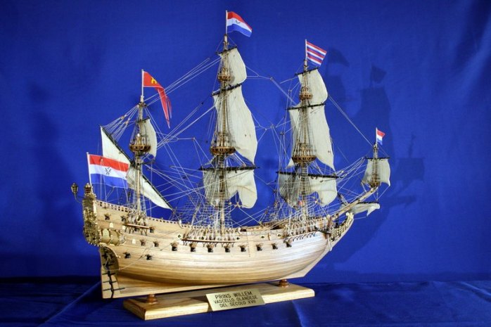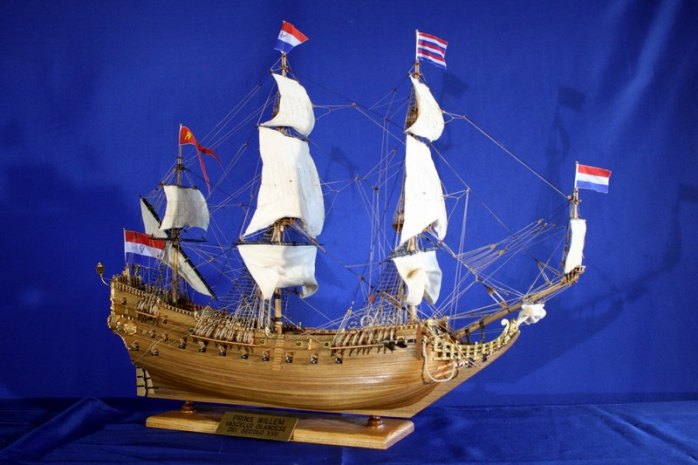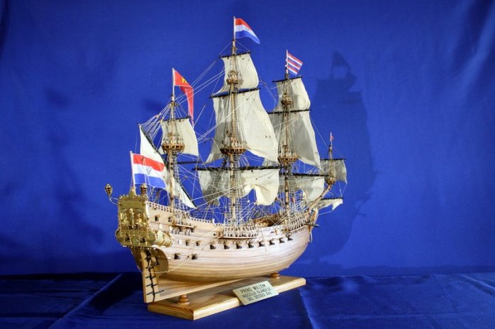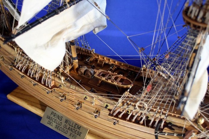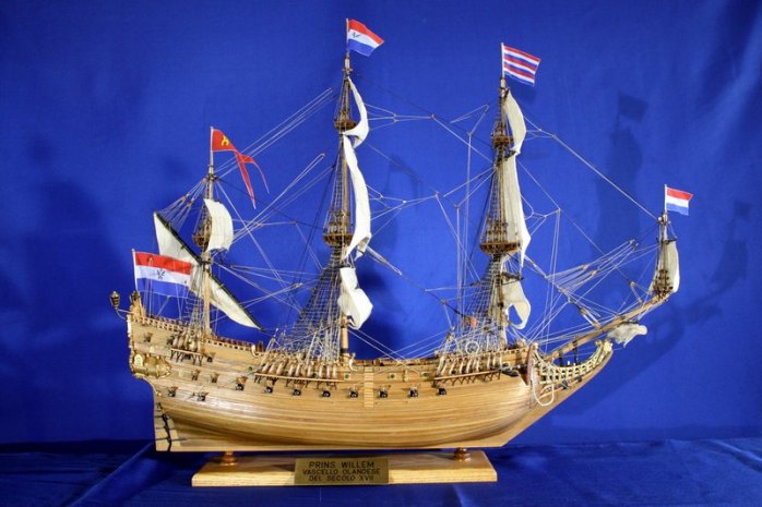 La Prins Willem fu, probabilmente, la più grande nave a poppa quadra appartenuta alla Compagnia Olandese delle Indie Orientali. Costruita a Middleburg fra il 1649 e il 1650, fu successivamente modificata per l’impiego militare e furono aggiunte 6 bocche da fuoco, in pratica 3 nuovi portelloni per lato, verso prua. Per un breve periodo fu utilizzata come nave ammiraglia dal celebre ammiraglio Witte de Witt. Restituita successivamente alla Compagnia, fra il1653 e il 1660, tornò ad operare sulle rotte commerciali con le Indie. Questo modello riproduce la nave come allestita dalla Compagnia delle Indie Orientali per il traffico commerciale.