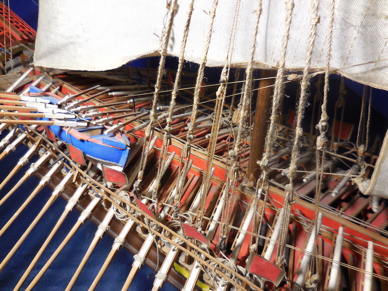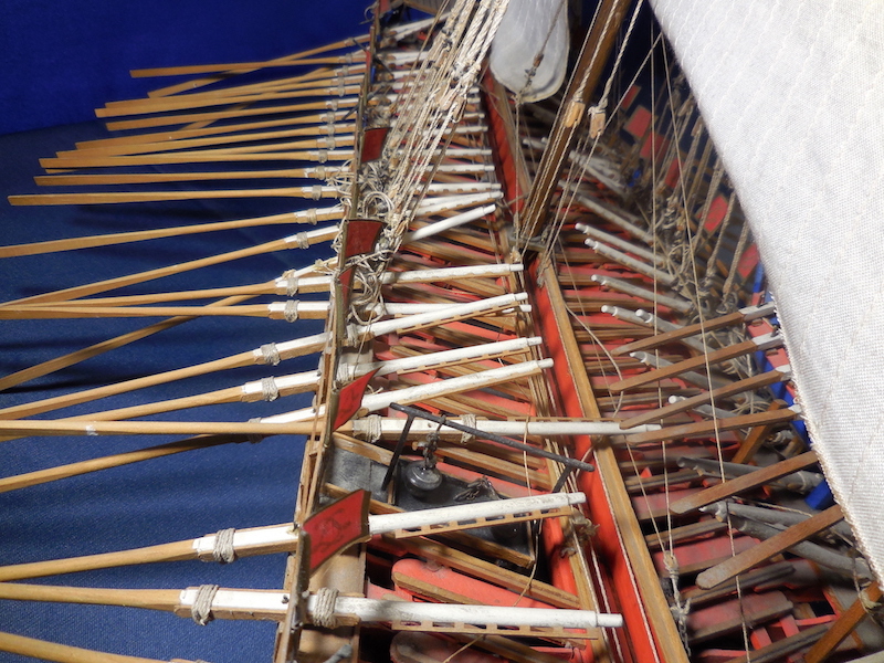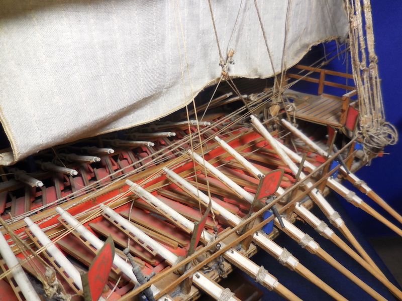 All’estremità di ogni remo c’era un capovoga, ovvero un membro dell’equipaggio regolarmente pagato. Gli altri erano schiavi o condannati alla pena della “galera”.