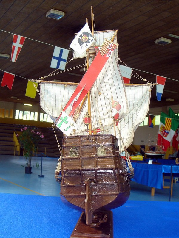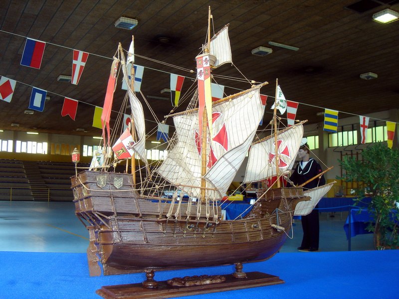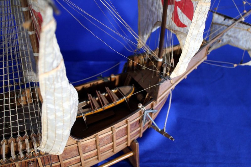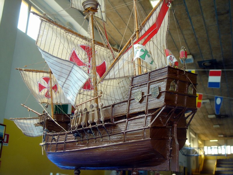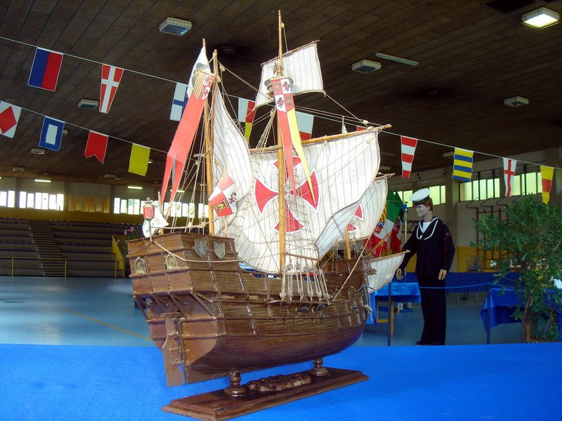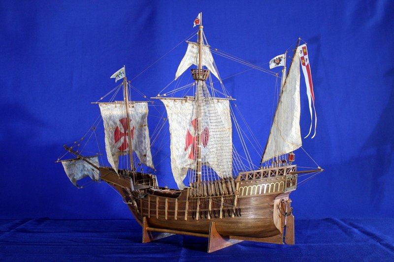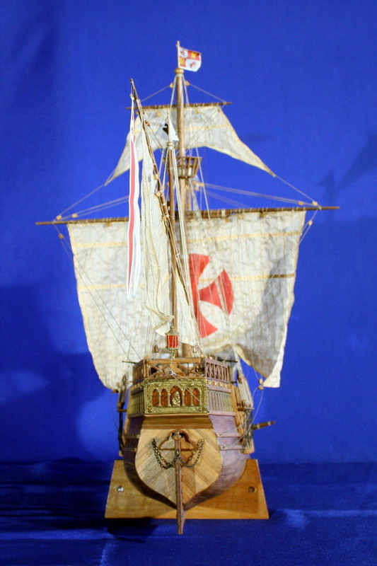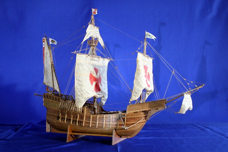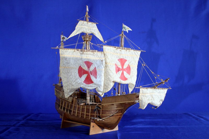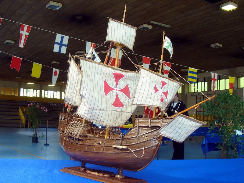 La Santa Maria fu la nave ammiraglia nella spedizione con la quale Cristoforo Colombo, partito il 3 Agosto 1492 dal porto di Palos della Frontera, raggiunse il continente americano dopo 71 giorni di viaggio. Costruita a Santander era molto robusta e faceva servizio mercantile con il nome di Galenda. Apparteneva a Juan De La Casa che la noleggiò per l’impresa. Era una Caracca lunga 39 e larga 8 metri, a tre alberi con vele quadre ed una stazza che, ai valori attuali, era di 51 tonnellate. L’albero di maestra era alto 26,6 metri con il grande “trevo”, estendibile con due coltellacci laterali, sul quale era dipinta la Croce di Castiglia e, sopra, una piccola vela di gabbia. Sull’albero di trinchetto c’era l’omonima vela e, sull’albero di mezzana, la vela latina triangolare. Sul bompresso c’era la Civada. A poppa c’era un cassero nel quale si trovava la cabina di Cristoforo Colombo mentre gli altri componenti dell’equipaggio che raggiungeva i 52 uomini dormivano sotto il ponte di coperta. La Santa Maria era in grado di tenere una buona velocità che, in condizioni favorevoli, poteva raggiungere anche i 10-12 nodi. Era armata con 4 bombarde da 90 mm, colubrine e armi portatili. Si arenò a Hispaniola e andò perduta. Cristoforo Colombo proseguì il viaggio sulla Pinta.