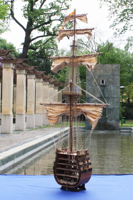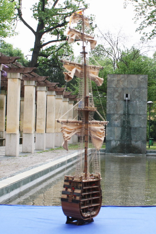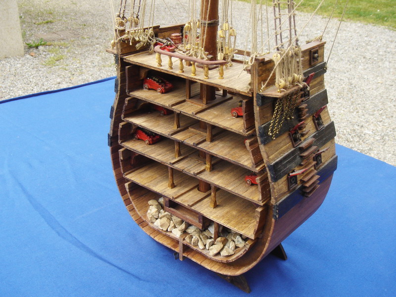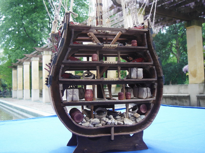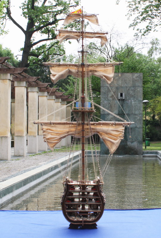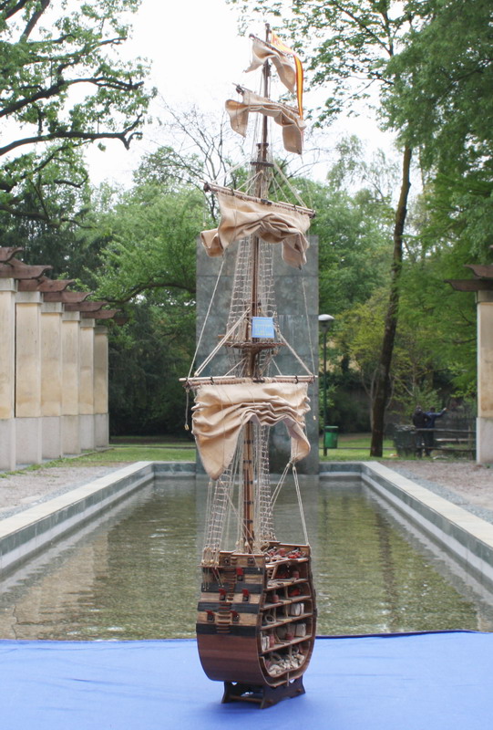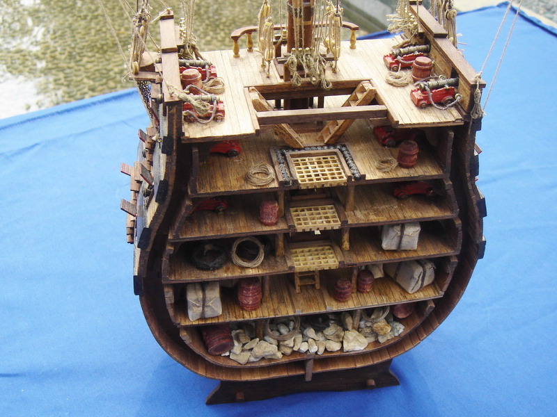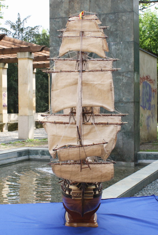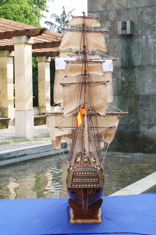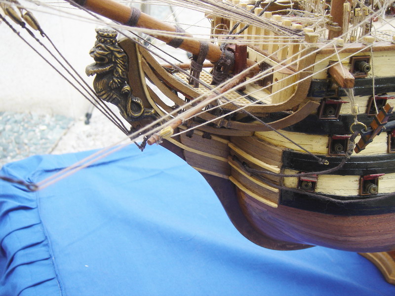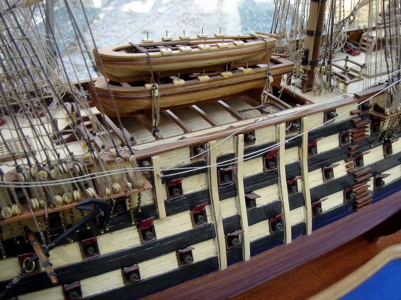La Santisima Trinidad era un vascello spagnolo inizialmente a tre ponti, varato a La Havana, Cuba, nel 1769. Nel primo allestimento contava 112 cannoni, poi aumentati a 130 e infine a 140 grazie alla creazione di un quarto ponte, ma poi ridotti ancora a 130. Anche se sul numero finale dei cannoni si hanno informazioni incerte, nell’ultima versione essa era ancora considerata il più grande e armato vascello da guerra a quattro ponti del mondo e nella storia è rimasta come il più famoso dei pochi vascelli a quattro ponti mai costruiti. Nella guerra dichiarata nel luglio del 1779 all’Inghilterra dalla Spagna, unitasi alla Francia impegnata nella guerra d’indipendenza americana, la SS.Trinidad prese parte come nave ammiraglia della flotta spagnola a operazioni congiunte nel canale della Manica. Dopo aver partecipato nel 1782 al secondo assedio di Gibilterra e alla battaglia non decisiva di Cape Spartel venne modificata con l’aggiunta del quarto ponte e di 8 cannoni. Nel febbraio del 1797 partecipò alla battaglia di Cape St. Vincent, dove venne seriamente danneggiata dopo di che riuscì a sfuggire fortunosamente agli Inglesi, rifugiandosi a Cadice per le riparazioni. Il 21 ottobre 1805 prese parte con la flotta francese alla battaglia di Trafalgar. Data la difficoltà di manovra, dovuta alla sua rilevante massa e a causa della debolezza del vento in quella giornata, venne a mancare il contributo della SS.Trinidad alla causa della flotta ispano-francese. Le sue grandi dimensioni e la sua stessa posizione assunta sul campo di battaglia la fecero subito oggetto dell’attacco concentrato di numerosi vascelli inglesi. Gravemente danneggiata, fu costretta ad arrendersi. Il giorno successivo, durante una tempesta, mentre era rimorchiata, imbarcò acqua e affondò.