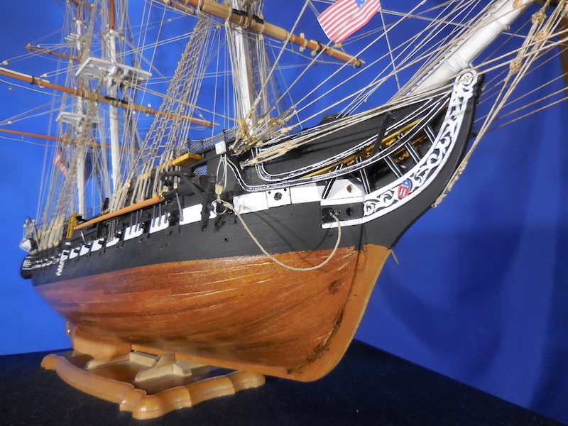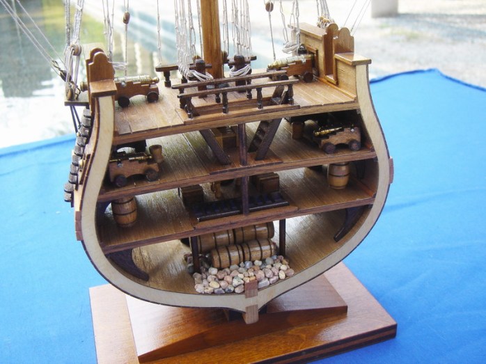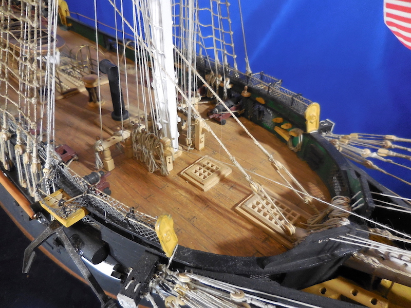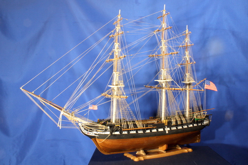 La USS Constitution è una fregata pesante a tre alberi, in legno, il cui nome le è stato dato in omaggio alla Costituzione degli Stati Uniti. E’ la più vecchia nave al mondo ancora navigante. Varata nel 1797 nel cantiere di Edmond Harrt, Boston, era una delle fregate standard più grandi e meglio armate dell’epoca. Ha partecipato fino al 1850 a numerose missioni e azioni belliche lungo le coste dell’America del Nord , dell’Africa e nel Mediterraneo. E’ stata anche nave scuola durante e dopo la guerra di secessione. Successivamente è stata impiegata per attività commerciali e di rappresentanza,. Nel corso della sua lunga storia, salvata più volte dalla demolizione grazie al sostegno dell’opinione pubblica, fu sottoposta a molte e anche importanti riparazioni. Nell’ultima revisione, completata nel 1995, la Constitution è stata rimessa in condizioni di navigare e il 21 luglio 1997 per celebrare il suo duecentesimo compleanno si è mossa per un’ora veleggiando in mare senza assistenza. Essa è ormeggiata attualmente nel cantiere di Charlestown a Boston, dove è meta di milioni di visitatori all’anno, ed è un’icona della US Navy nella quale figura ancora in servizio attivo.