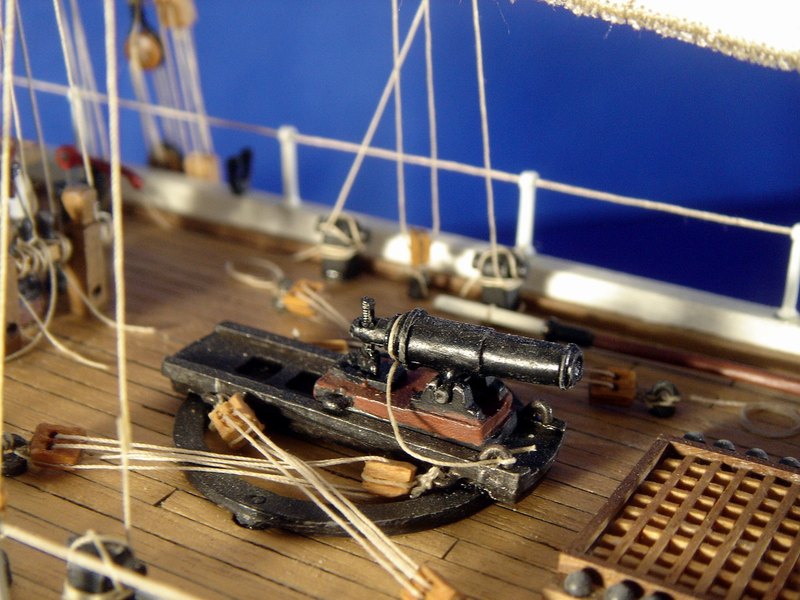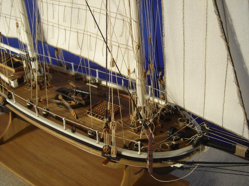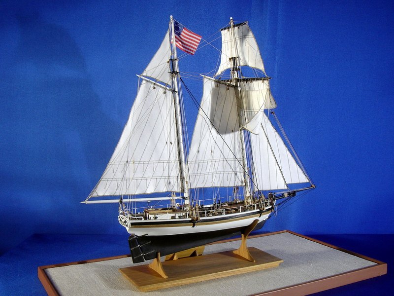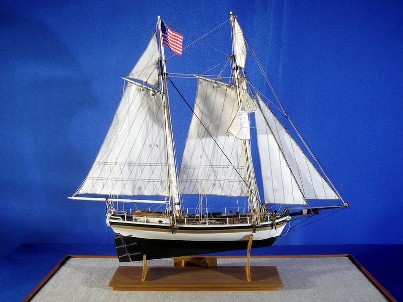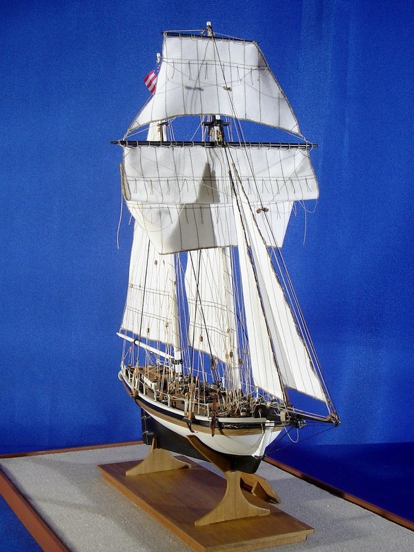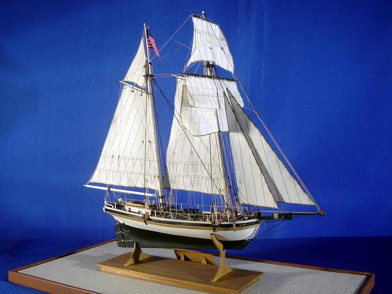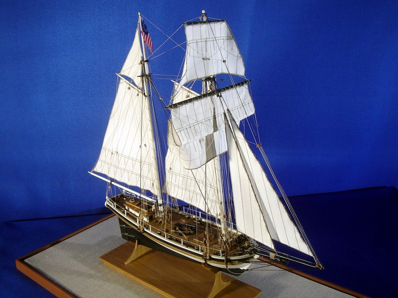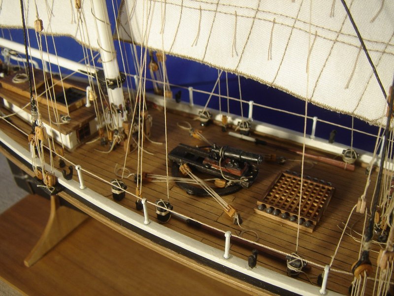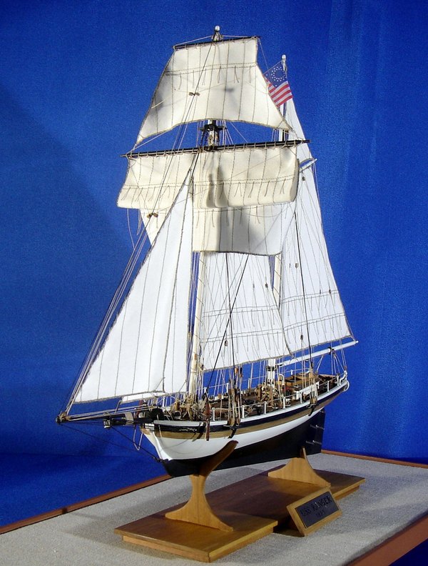 Il modello rappresenta uno dei tipici cutter americani costruiti nella prima metà del 1800 con funzioni di guardiacoste, soprattutto per contrastare il contrabbando. L’armamento era costituito da una grossa carronade al centro della coperta che, ruotando su una rotaia circolare, permetteva di fare fuoco da entrambi i fianchi dello scafo.